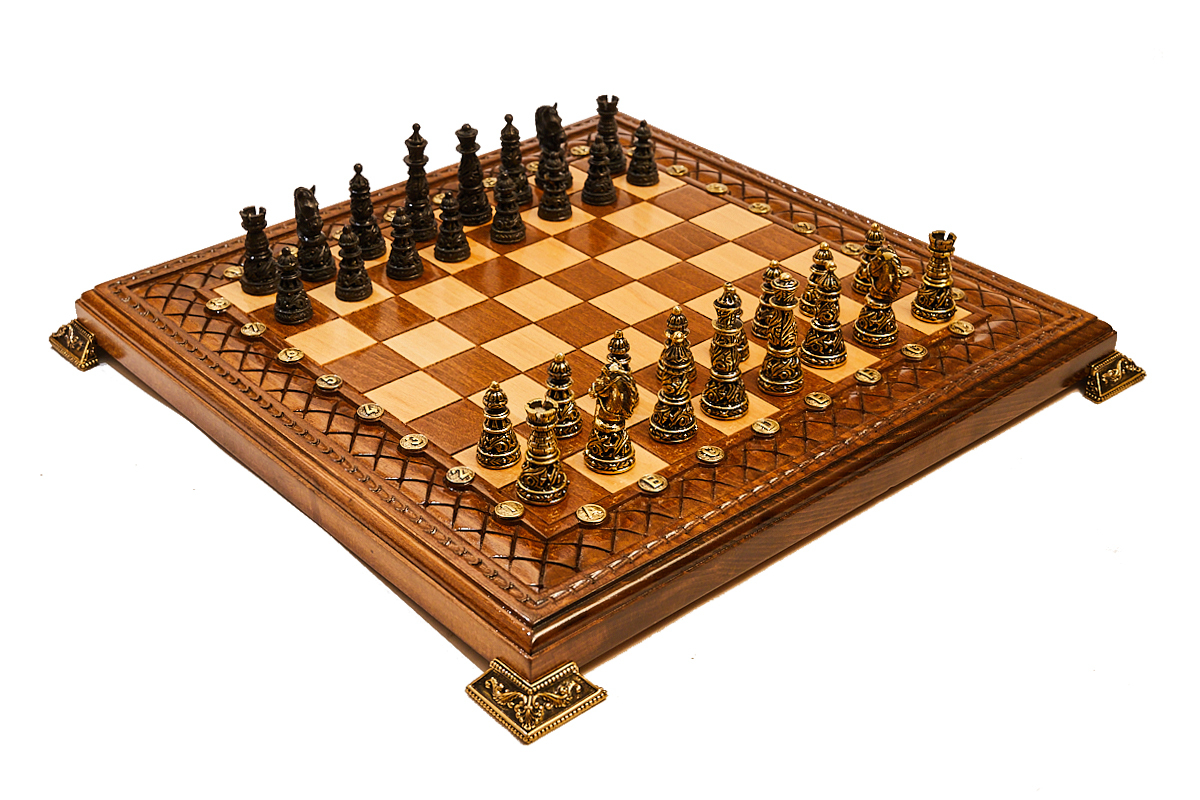 Создан он Кареном Халеяном из настоящего бука, что уже выступает гарантией многолетнего срока службы. Игровая поверхность украшена изысканной резьбой с сохранённой древесной структурой, и всё это покрыто лаком, придающим невероятный лоск и роскошность. Комплект включает в себя фигуры, которым тоже уделено немалое внимание, что видно по гравировке. Они не повредят доску, так как снизу имеется мягкая тканевая подложка.