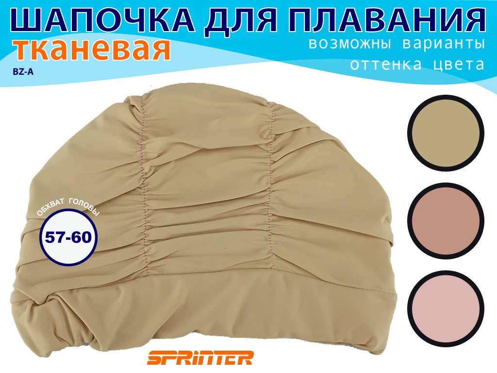 Шапочка для плаванья универсального размера изготовлена из полиамида объёмная. Оттенки по цвету продаются в ассортименте. На ощупь шапочка очень мягкая, не электризуется и не рвет волосы. Благодаря текстурной поверхности не соскальзывает с головы. Подходит для регулярных тренировок. Такая шапочка очень прочная, хорошо растягивается. Не вызывает аллергии и не давит на голову. Ухаживать за шапочкой просто, нужно ополоснуть в пресной воде после занятия и дать высохнуть при комнатной температуре. Тканевая шапочка больше подходит для занятия аквааэробикой и плавающим без погружения головы.