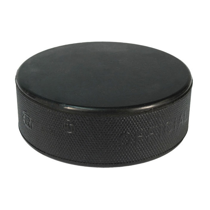 Вулканизованная резина. Параметры шайбы, такие как: твердость, вес, эластичность после отскока, плоскостность, качество поверхности, диаметр, толщина и проч. отвечают международным стандартам и самым строгим требованиям канадско-американской NHL.