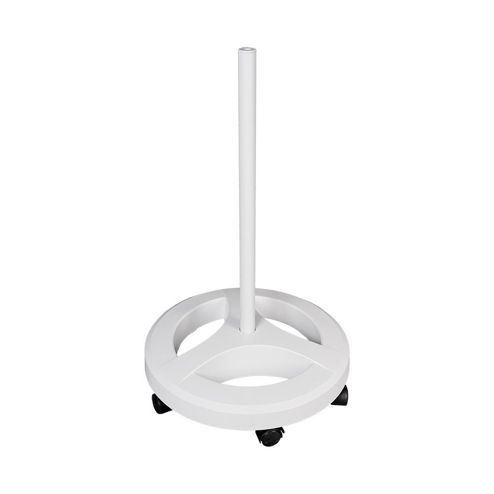 Напольный штатив предназначен для установки луп ламп Veber с подсветкой (8608D LED Bi-color, 8608D 5D, 8608D 3D/5D, 8608D ). В основании штатива находится 6 вращающихся роликов со стопорами, которые позволяют легко перемещать штатив по полу помещения. Основание массивное (вес около 7 кг) — поэтому, можно быть уверенным, что лампа не перевесит и не упадёт даже в самых крайних позициях. Штатив позволяет быстро направить и зафиксировать любое положение осветителя относительно рабочей зоны.