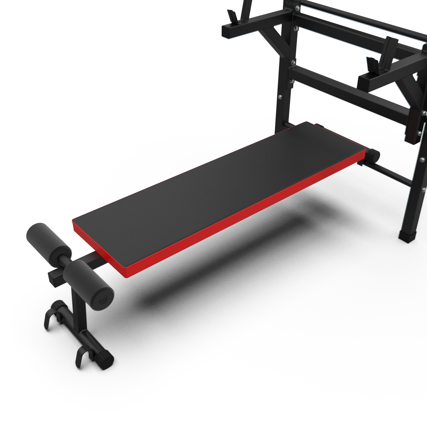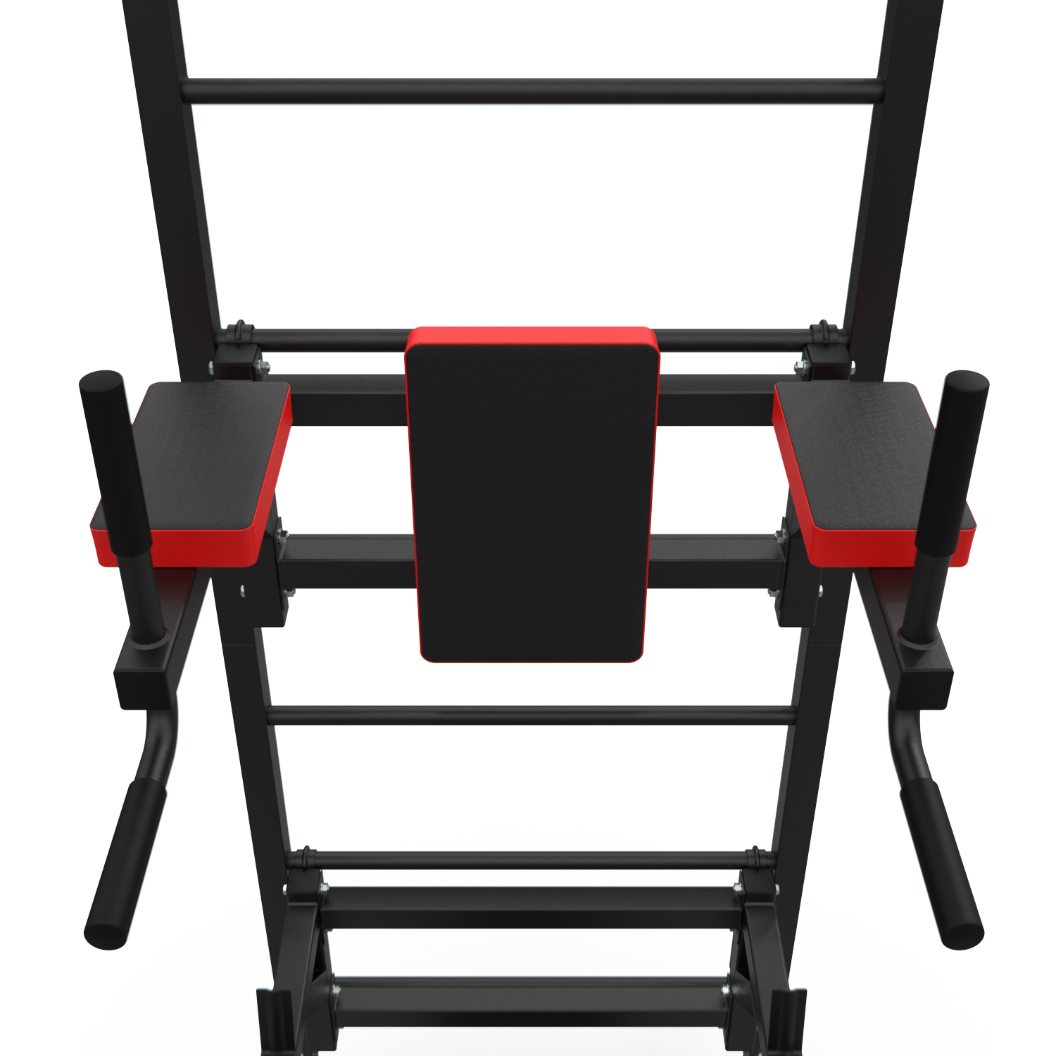 Турник длиной 99 см оснащён мягкими неопреновыми ручками, очень легко перевешивается на перекладины шведской стенки, что позволяет менять его высоту. Расстояние от ручек турника до шведской стенки (вынос турника) - 72 см. Вынос брусьев – 87 см, размер подушки под спину 42 х 25 см, а её толщина 5 см. Подушки подлокотников размерами 25 х 13 х 5 см, а поручни длиной 32 см диаметром 25 мм и толщиной стали 1,5 мм.