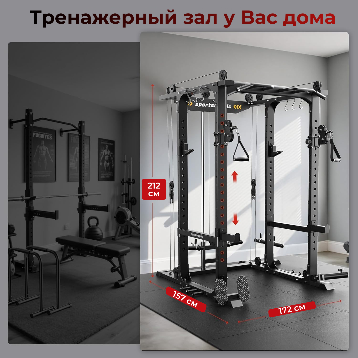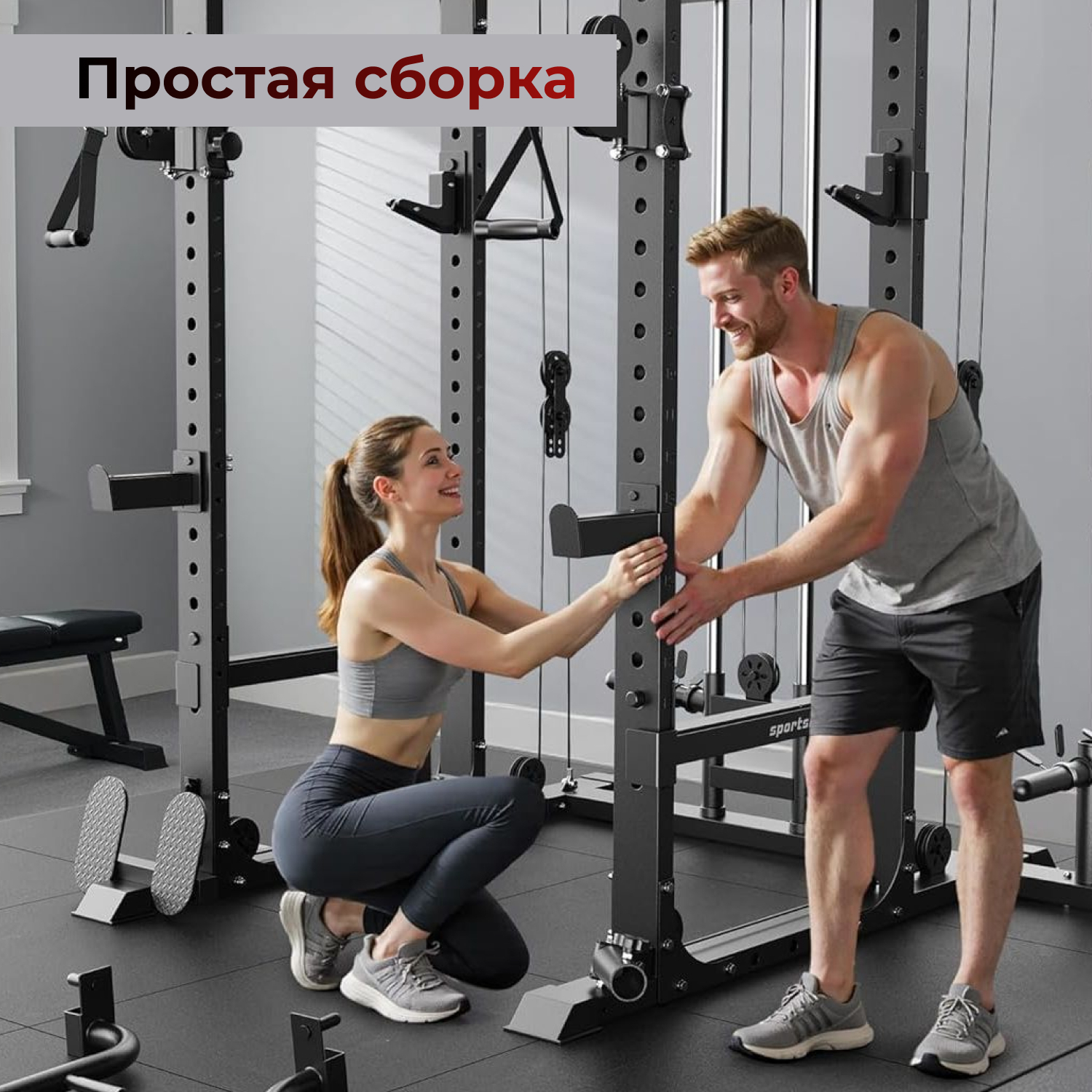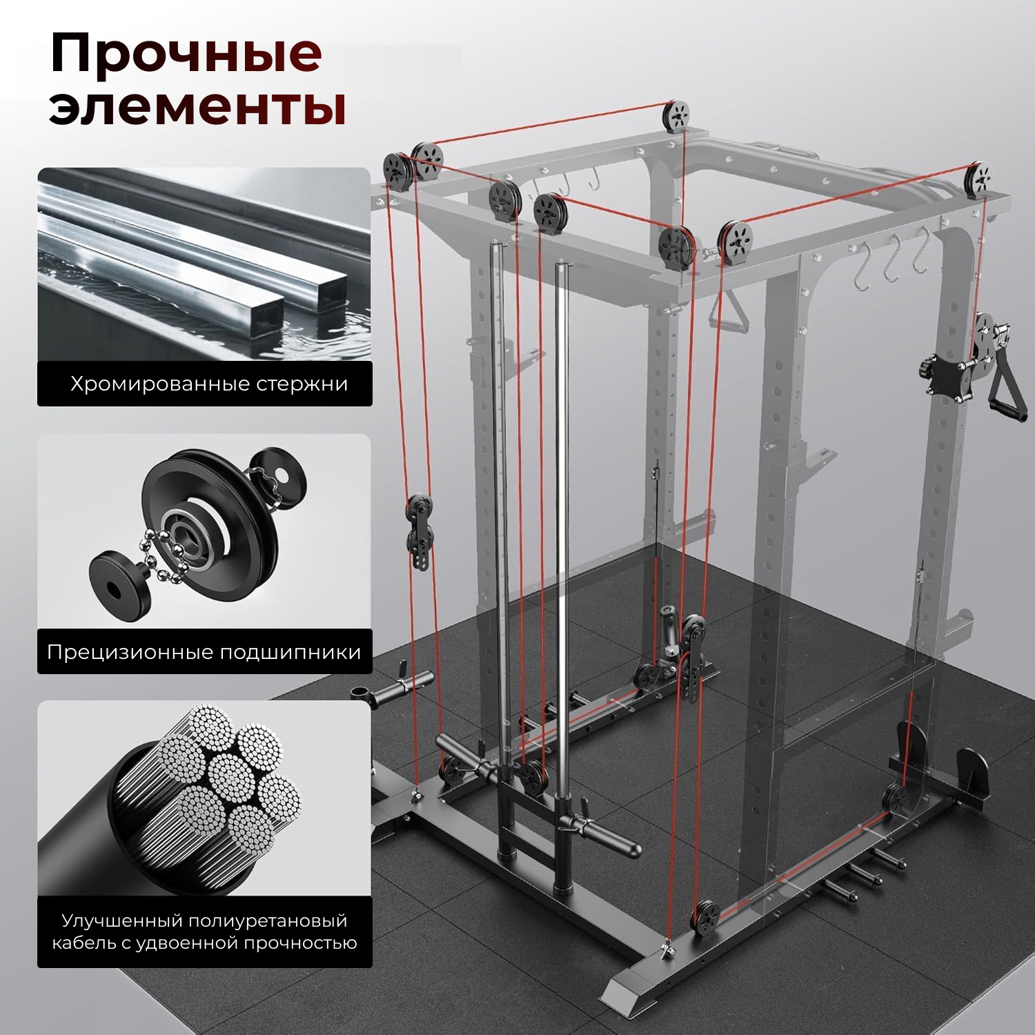 Профиль рамы 40*80*2 мм, Максимальная статическая нагрузка до 1000 кг, что обеспечивает безопасную и комфортную эксплуатацию тренажёра для пользователей разного уровня подготовки. Рама имеет прочный профиль и посадочный диаметр, а толщина тросов и рукояти для тяги обеспечивают надёжность и стабильность при выполнении упражнений.