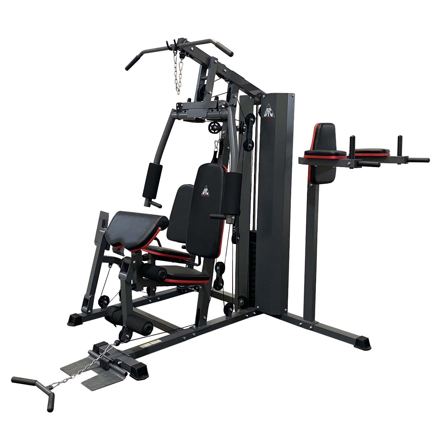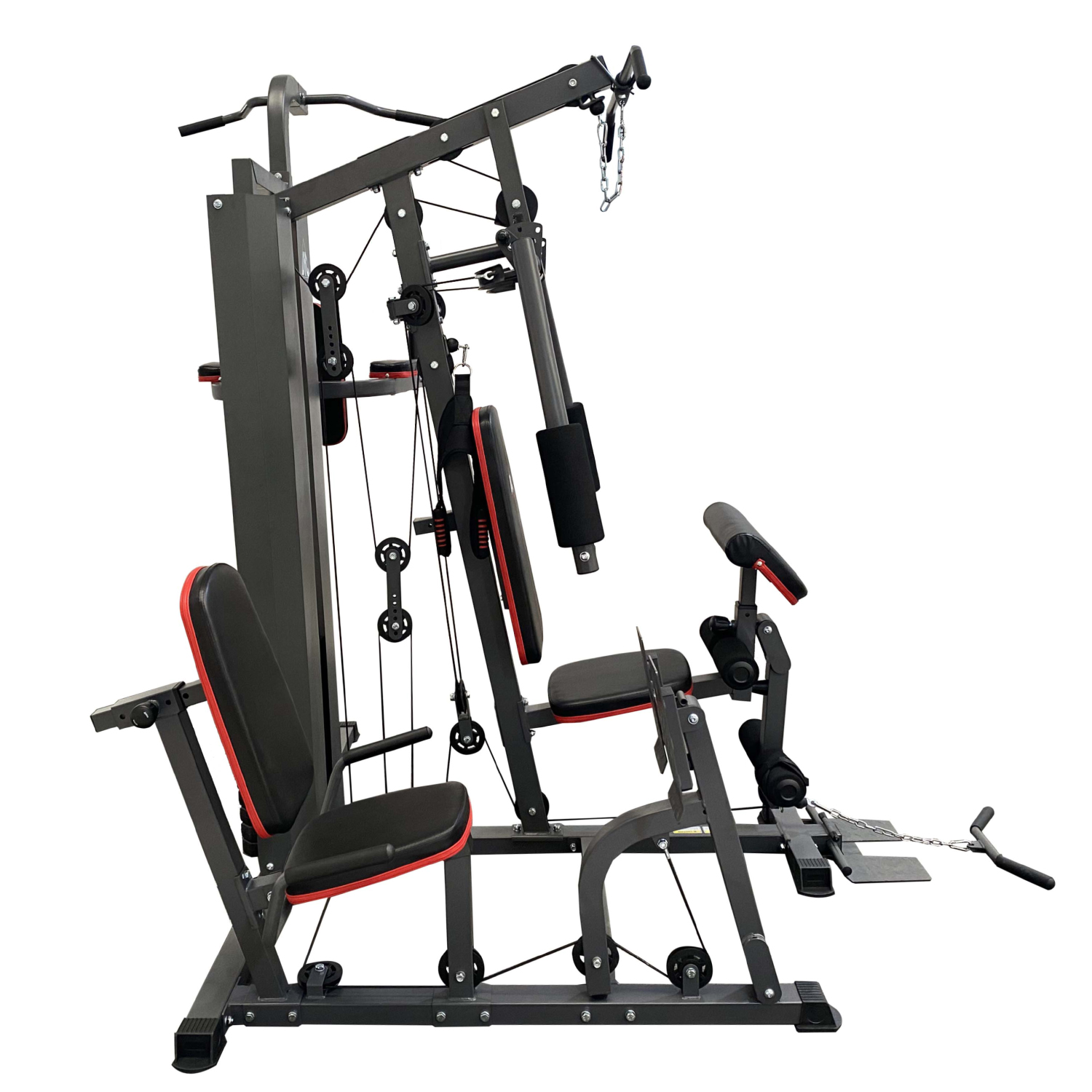 Силовая станция оснащена верхним и нижним тяговыми блоками, тренажёром «баттерфляй», партой для бицепса, мягкими валиками с анкерной фиксацией для ног, а также упорами для отжиманий и брусьями, что делает её универсальной для комплексной проработки всего тела дома. Этот тренажёр силовой комплекс идеально подходит как для домашнего использования, так и для полноценной силовой тренировки всего тела.