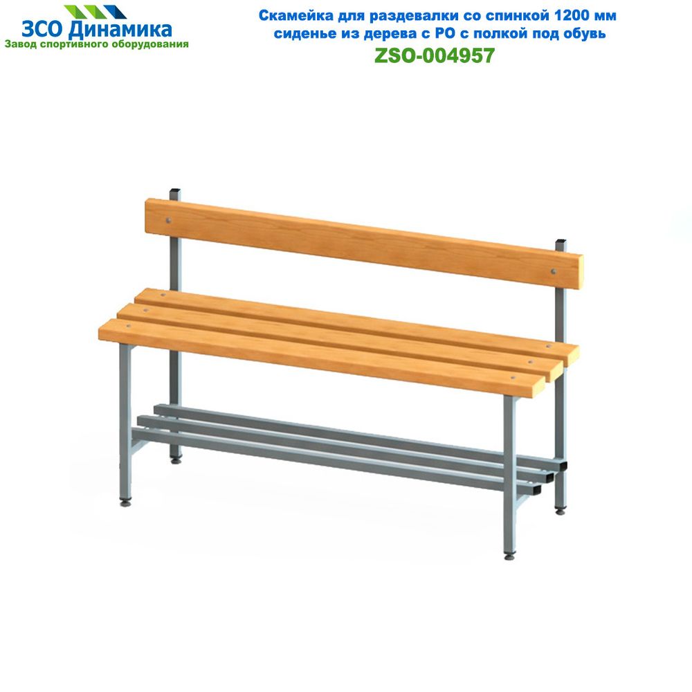 Скамейка для раздевалки с вешалкой представляет собой сборную конструкцию, состоящую из 3-х планок сидения, 1 планки под спинку и 1 планки под вешалку из массива сосны толщиной 35 мм и 2-х боковин и рамы под обувь из стального профиля. Поверхность планок сидения покрыта трехкомпонентным лаком в два слоя. Планки скамейки устойчивы к истиранию, царапинам и влажности. Сварные швы боковин данного изделия тщательно зачищены. Поверхность боковин покрыта порошковой краской. Крепление планок осуществляется к боковинам скамейки при помощи мебельных болтов. Во все внешние отверстия каркаса скамейки установлены пластиковые заглушки.