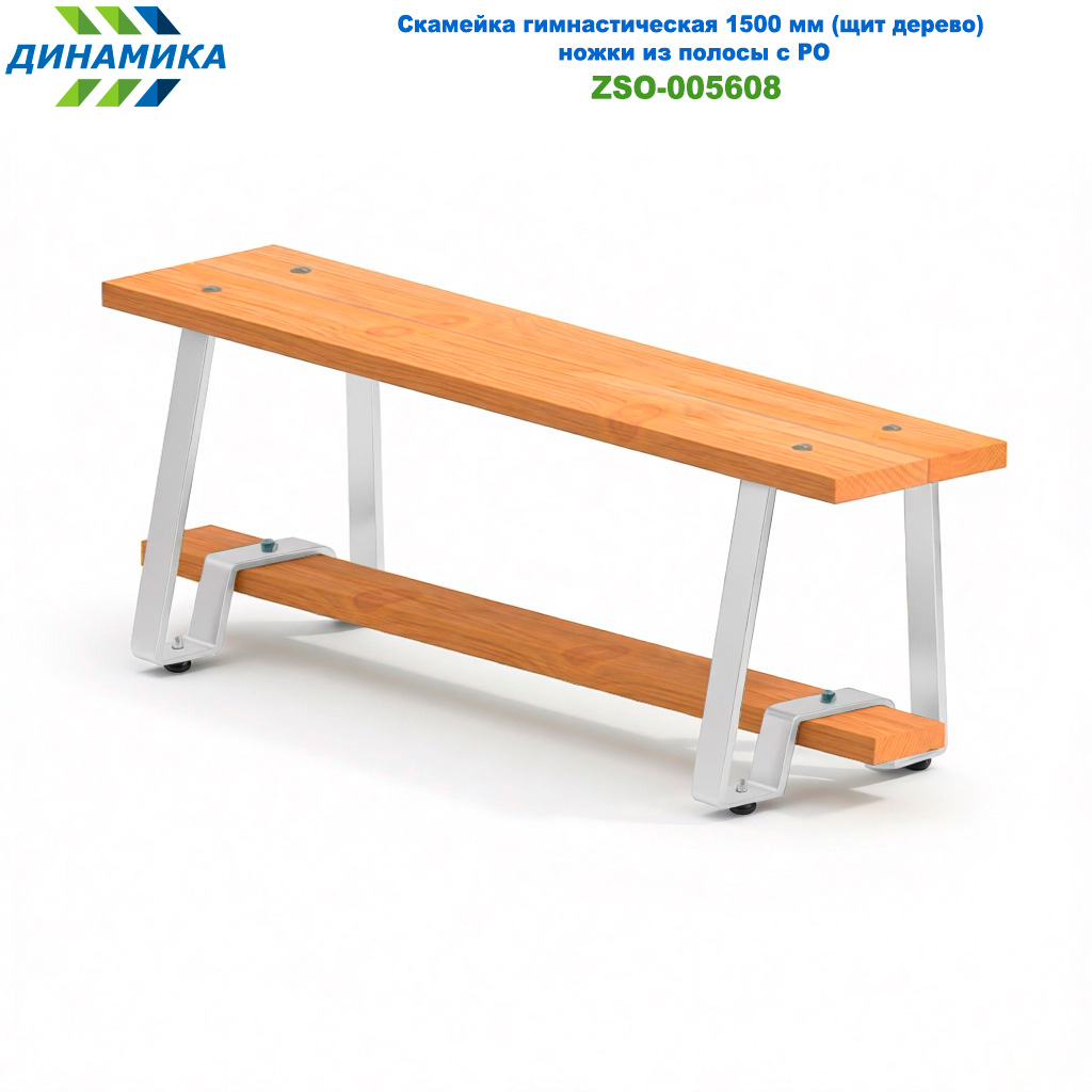 Скамейка гимнастическая (щит дерево) ножки из полосы - представляет собой сборную конструкцию, состоящую из сидения и царги изготовленных из дерева (клееный щит из дерева хвойных пород) и металлических ножек из полосы, покрытых порошковой краской. Фаски по периметру сиденья и царги скамейки имеют закругленную форму, что снижает вероятность получения травм при использовании изделия на занятиях. Поверхность скамейки тщательно отшлифована и покрыта высококачественным трёхкомпонентным лаком в два слоя. Для регулировки высоты скамейки на неровностях пола, а так же компенсации возможного изменения геометрии сидения имеются регулируемые опоры. Поставляется в разобранном виде.