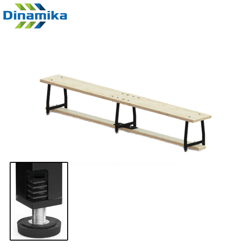 Скамейка гимнастическая ЭКОНОМ (щит дерево) ножки метал. с РО - представляет собой сборную конструкцию, состоящую из сидения и царги изготовленных из дерева (клееный щит из дерева хвойных пород) и металлических ножек из стальной профильной трубы, покрытых порошковой краской. Поверхность скамейки покрыта лаком в один слой. Поставляется в разобранном виде. Для регулировки высоты скамейки на неровностях пола а так же компенсации возможного изменения геометрии сидения имеются регулируемые опоры. Для экономии транспортировочного объема (по длине) скамейка состоит из двух равных частей.