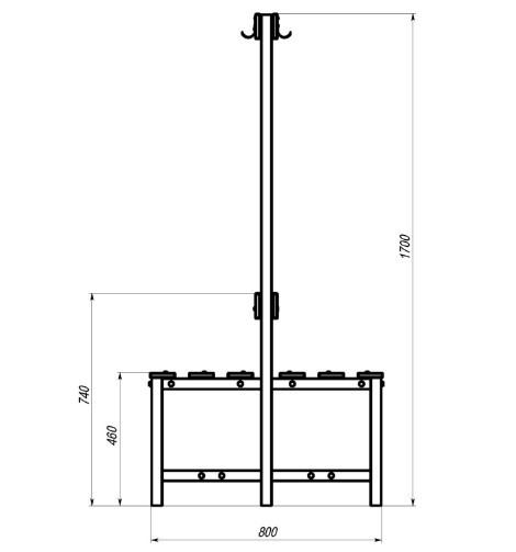 Планка для крючков, спинки и сиденья изготавливаются из отшлифованного массива сосны, покрытого лаком
