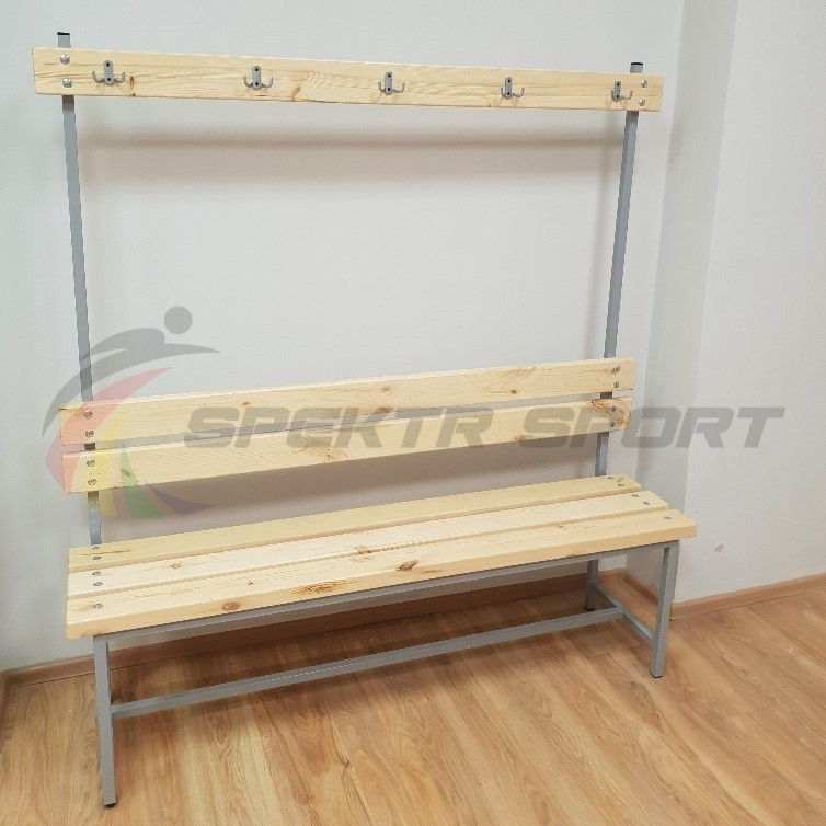 Скамейка с вешалкой для раздевалок цельная 1200 мм