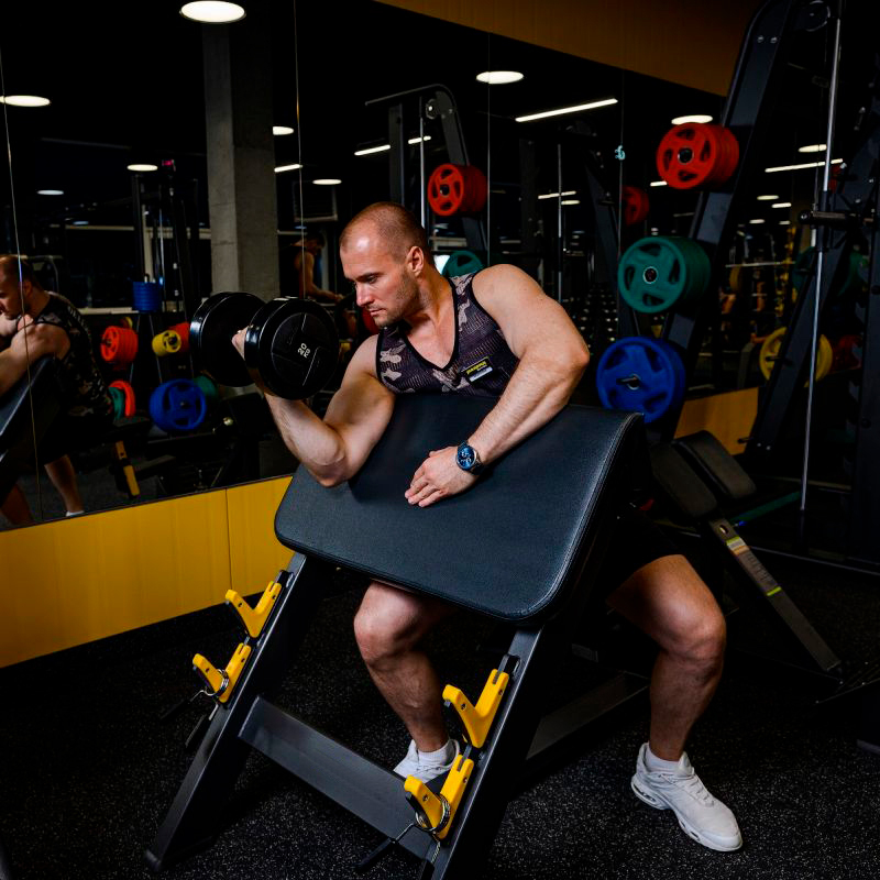 Скамья предназначена для целевой тренировки бицепса плеча с использованием штанги и является наилучшим способом для изолированной и локальной работы над бицепсом. Регулируемое сидение и мягкий стол опоры позволяют выполнить упражнение с максимальной эффективностью, снимая излишние напряжение с позвоночника и локтей Скамья имеет два уровня крюков.