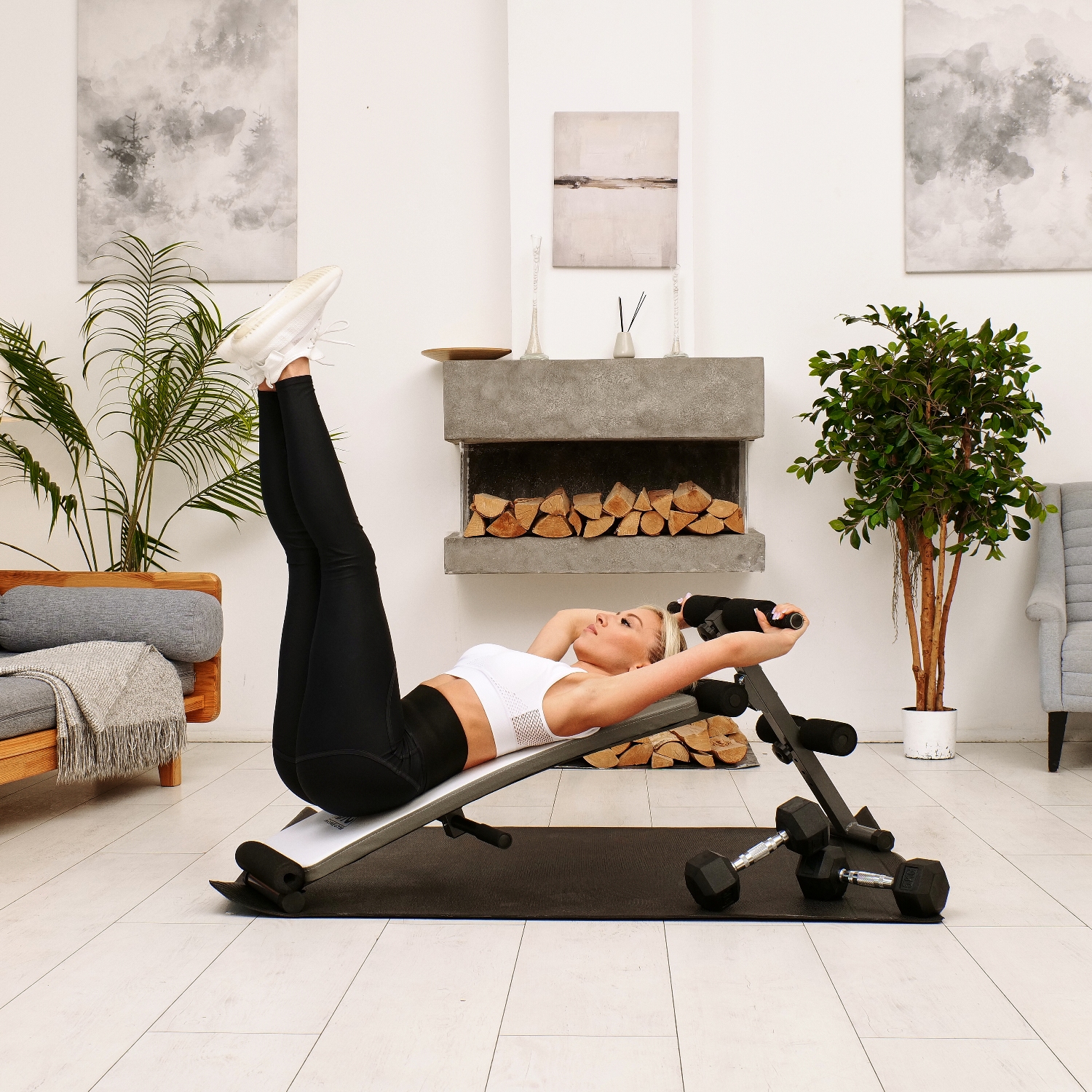 В комплекте две ручки по краям тренажера для помощи в подъеме во время тренировки.