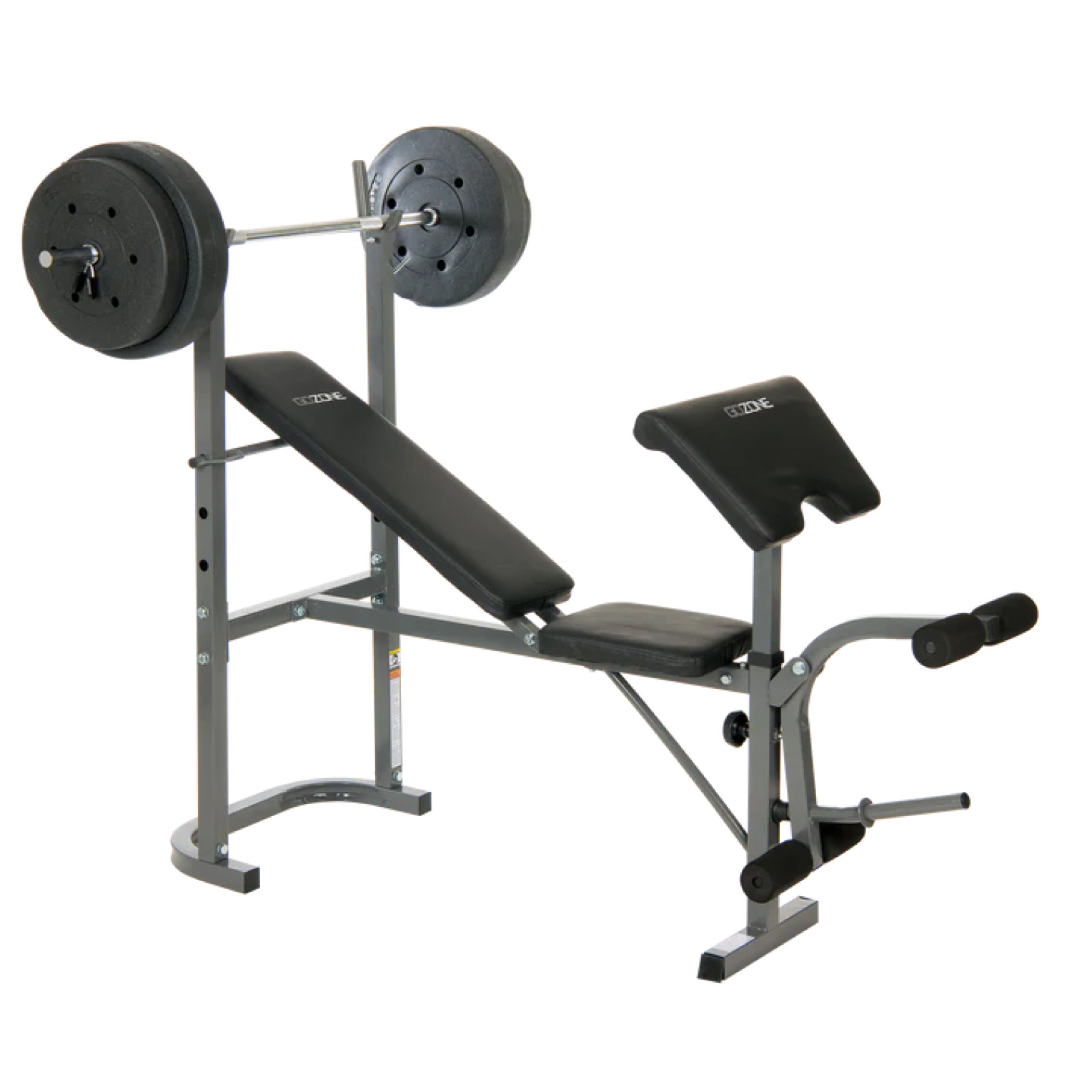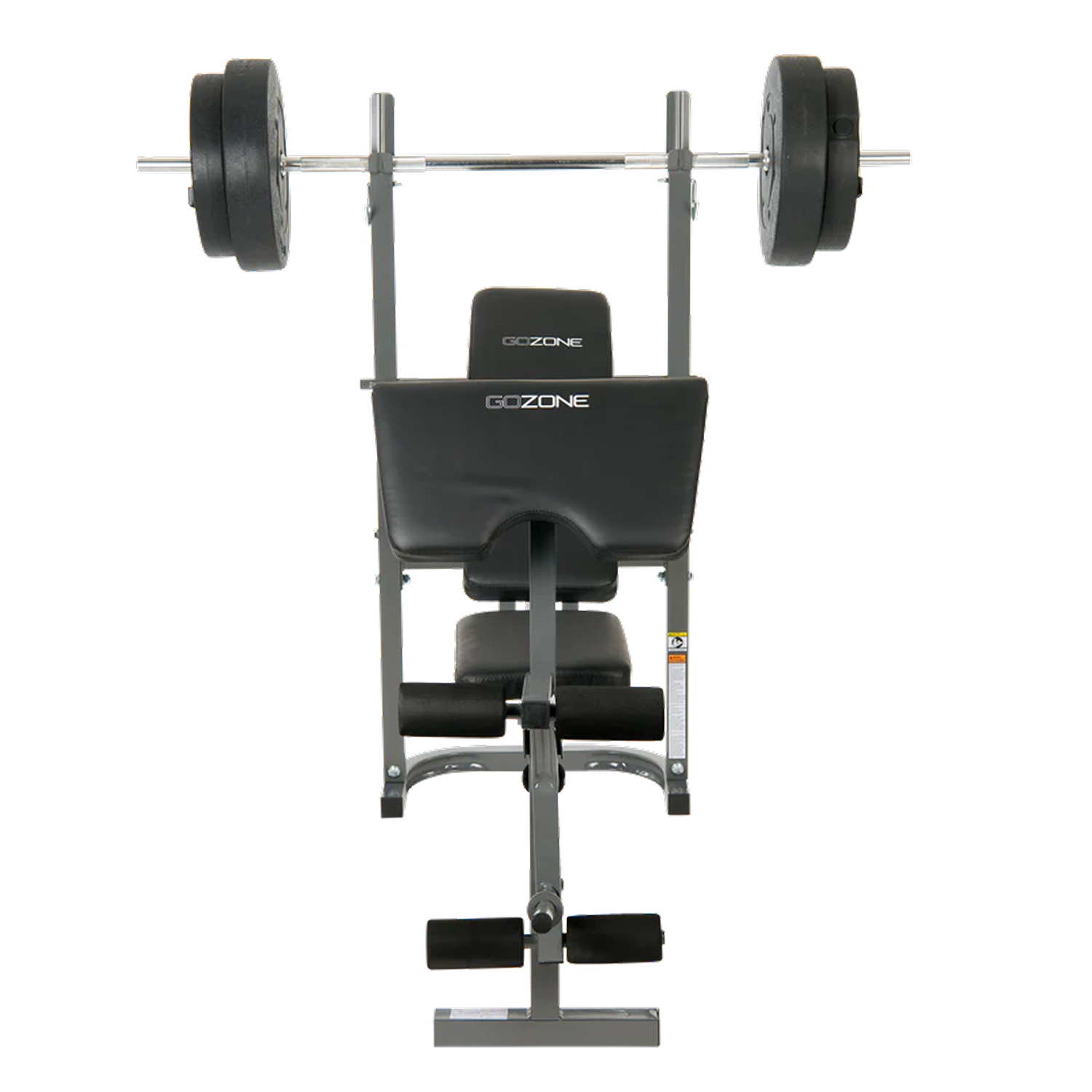 Максимальная статичная нагрузка составляет 190 кг. В комплект входят два диска по 5 кг и два диска по 10 кг, что позволяет сразу приступить к тренировкам и постепенно увеличивать нагрузку. Посадочный диаметр дисков — 19 и 25 мм, подходит для стандартных весовых дисков.