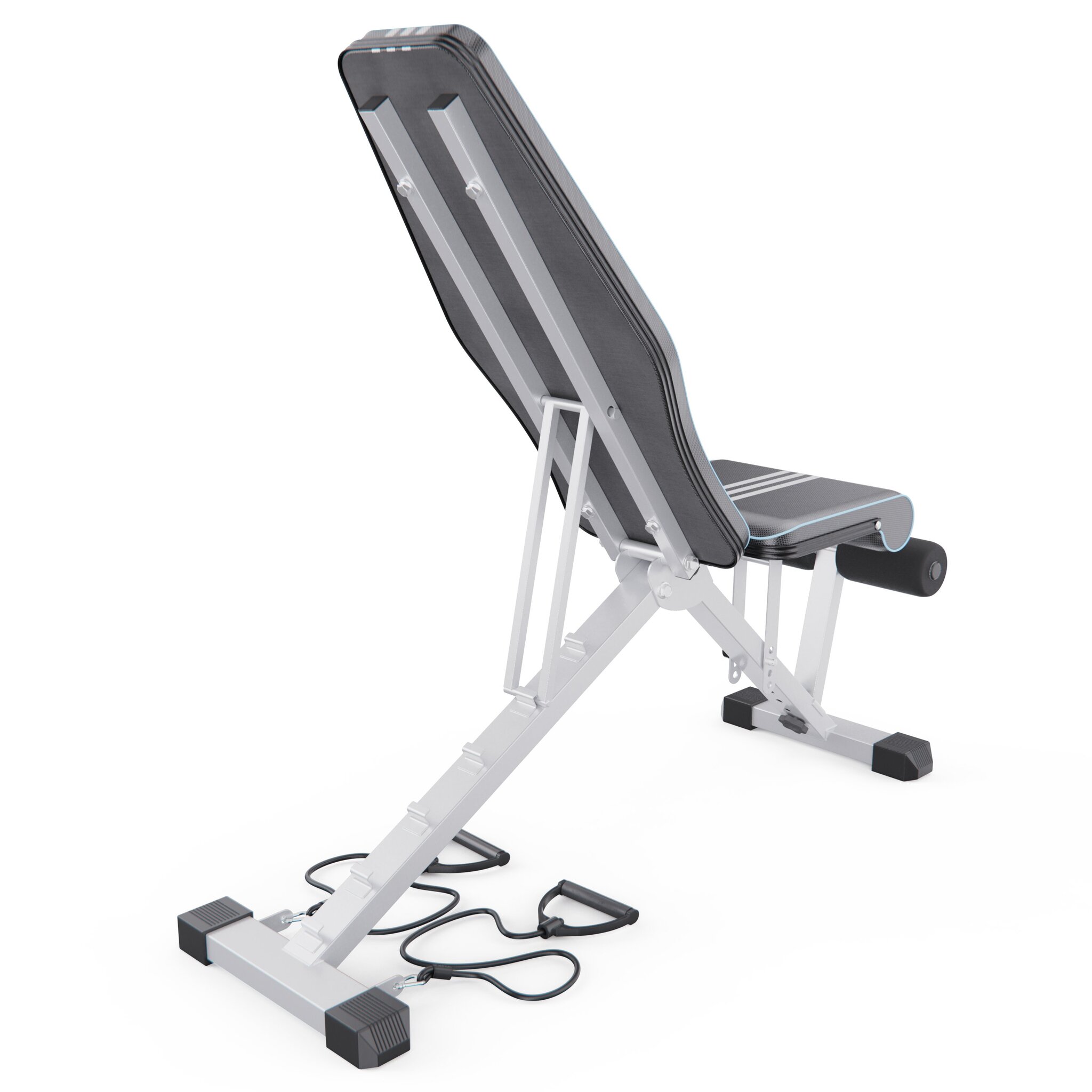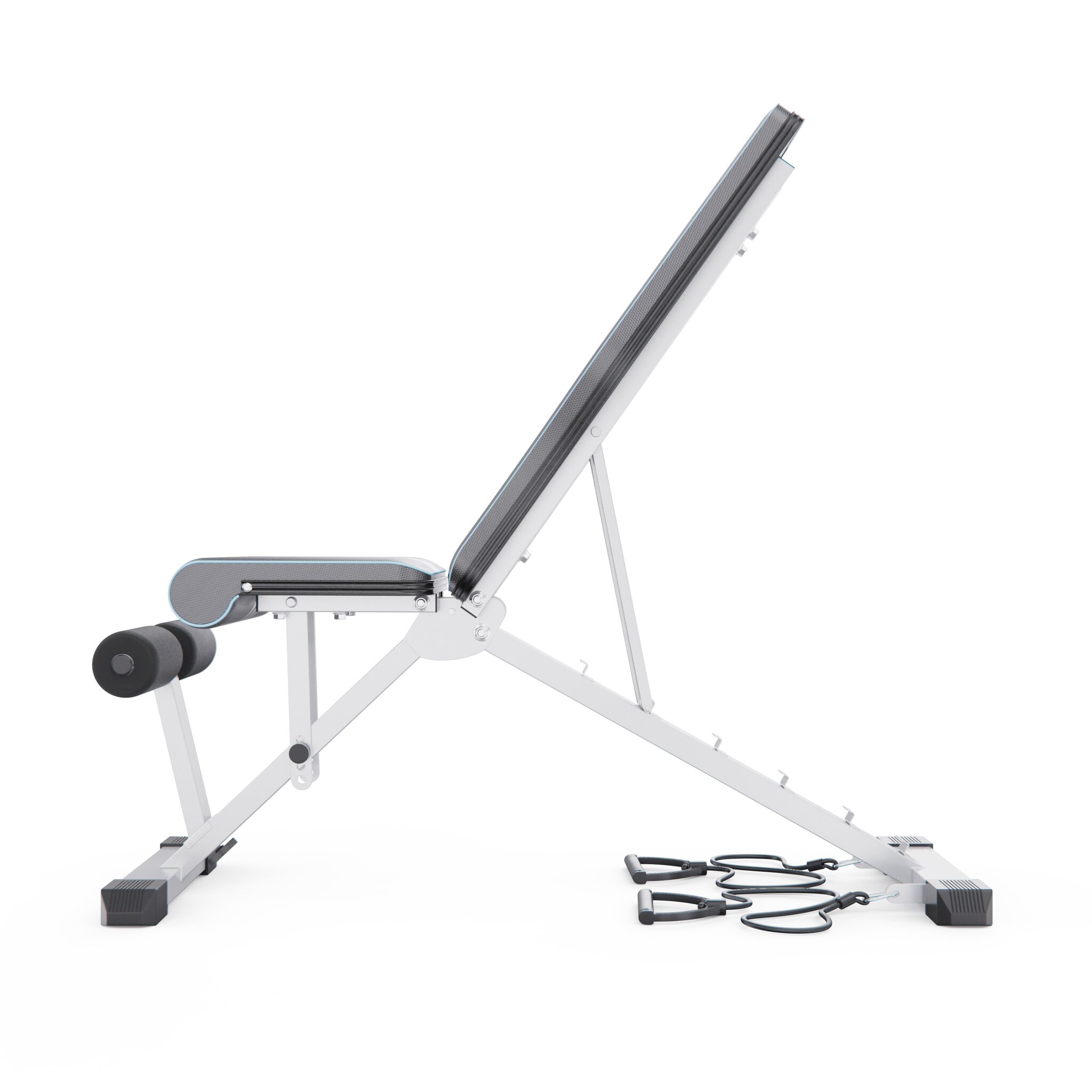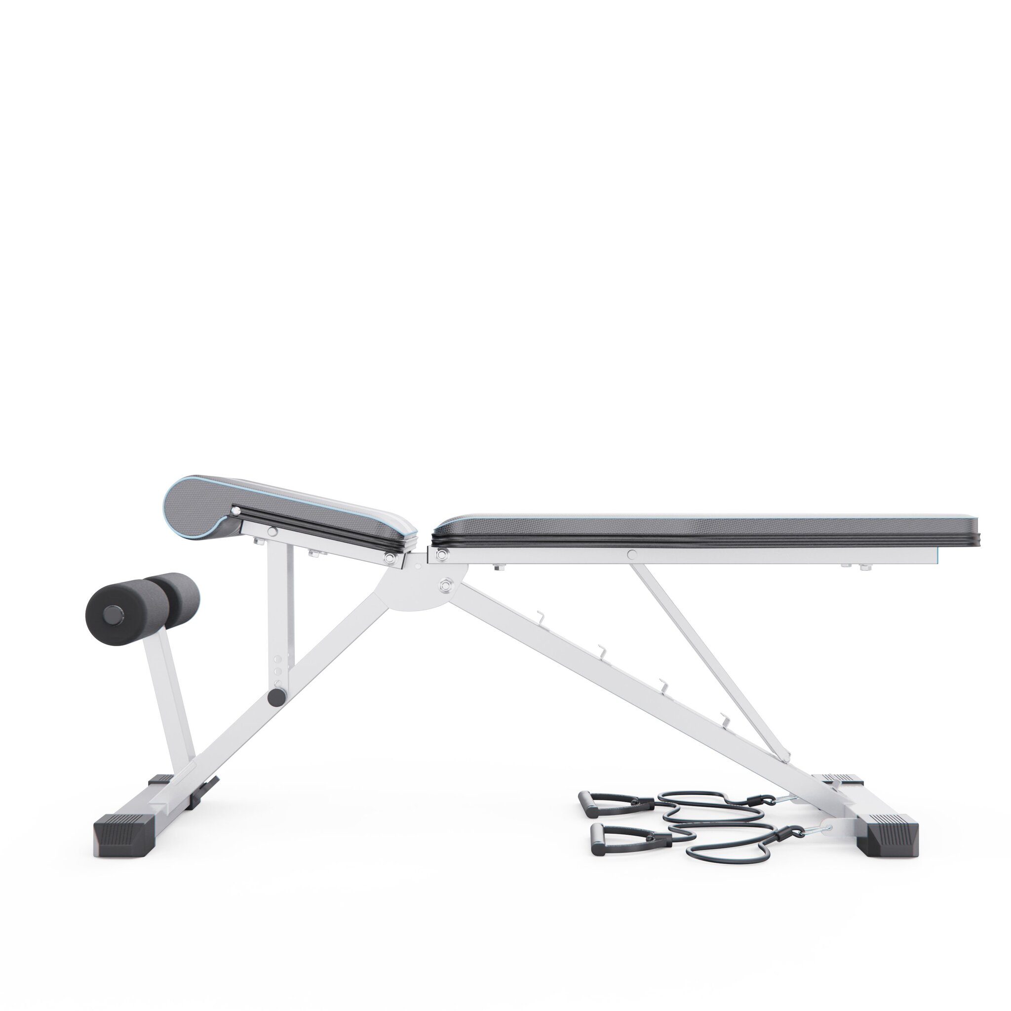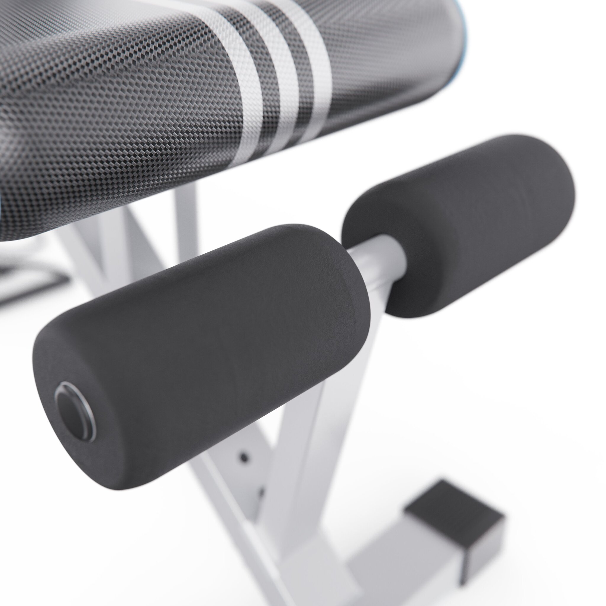 Скамья оснащена 8 уровнями регулировки угла наклона спинки, в том числе с отрицательным углом, что позволяет выполнять как силовые упражнения, так и упражнения для пресса и растяжку. Сиденье регулируется в 4 положениях, а мягкие валики для фиксации ног из вспененного материала имеют 4 уровня регулировки, что делает тренировки удобными для людей разного роста.