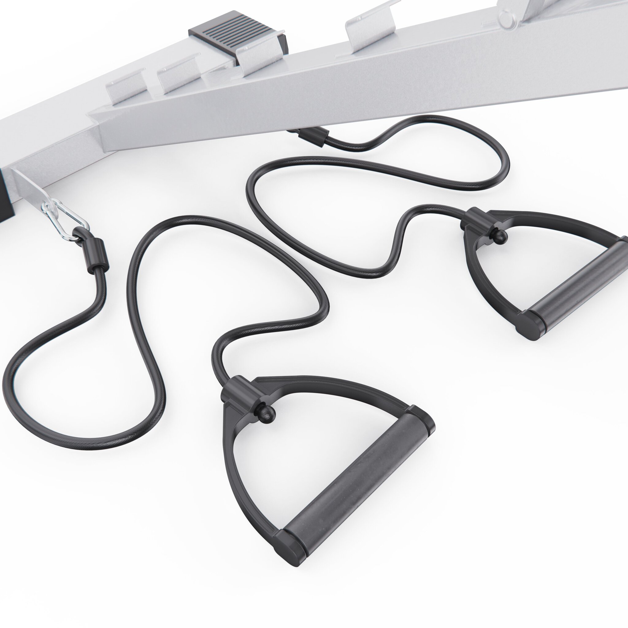 Мягкие валики из вспененного материала обеспечивают комфорт и надежную фиксацию ног, а устойчивая рама гарантирует безопасность даже при интенсивных занятиях. В комплект входят эспандеры, которые позволяют добавить нагрузку на мышцы рук, плеч и груди, делая ваши тренировки более функциональными.