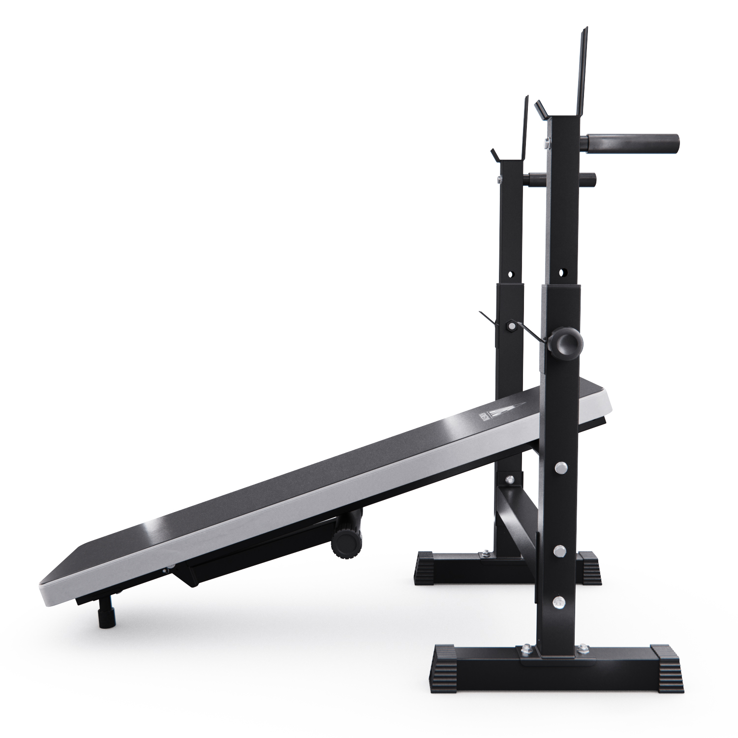 Скамью можно отрегулировать в трёх положениях с разным углом наклона: наклон 30 градусов, горизонтальное, а также вертикальное положение (в сложенном виде). Положение скамьи в наклонном виде поддерживается специальной ножкой.