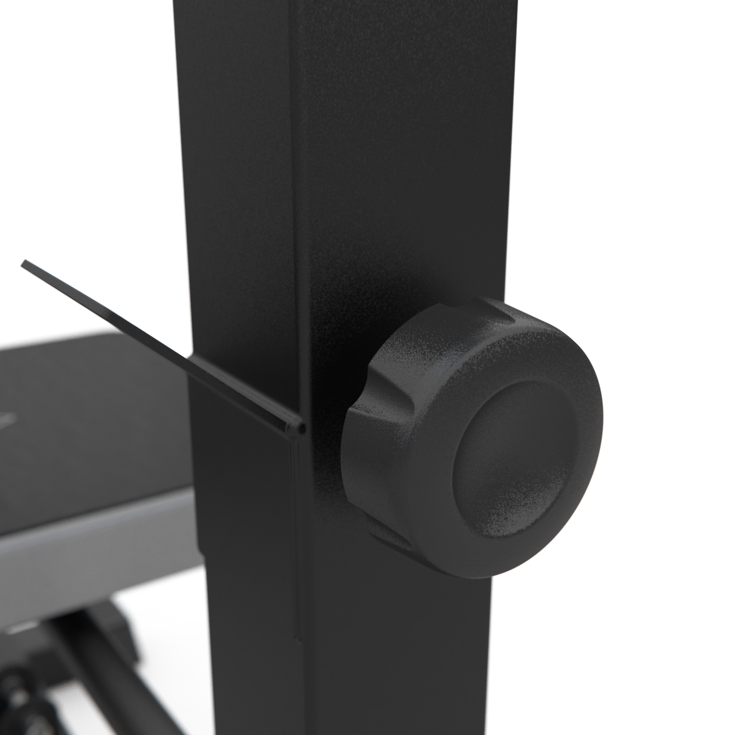 Стойки регулируются по высоте в диапазон от 81 до 99 см. Доступно 6 уровней с шагом в 3 см. Для регулировки на каждой стойке имеется специальная ручка.