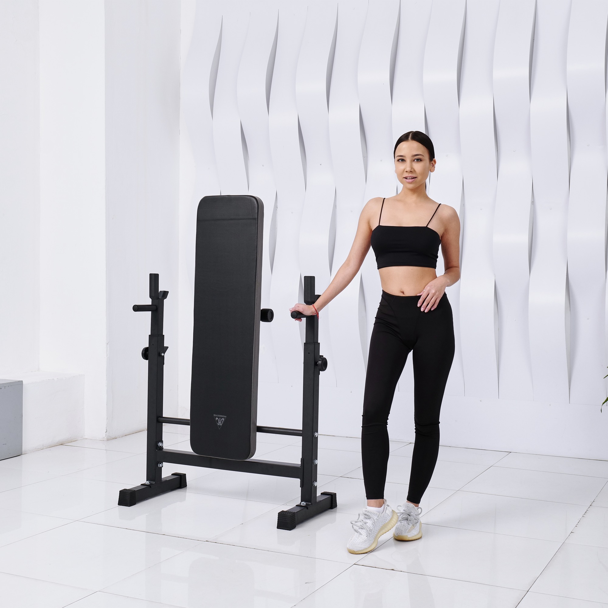 Скамья силовая DFC D6453L для домашнего использования имеет складную конструкцию, компактные размеры и выдерживает до 180 килограмм веса. В комплектацию входят стойки для штанги (штанга в комплект не входит). Предназначена в первую очередь для силовых упражнений на грудь (жим лёжа). Также можно использовать для тренировки пресса, мышц рук, ног (в том числе с использованием гантелей).