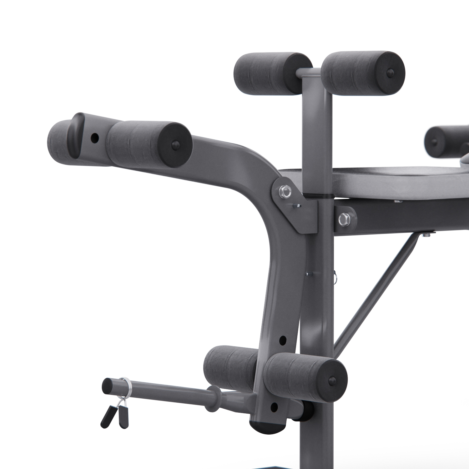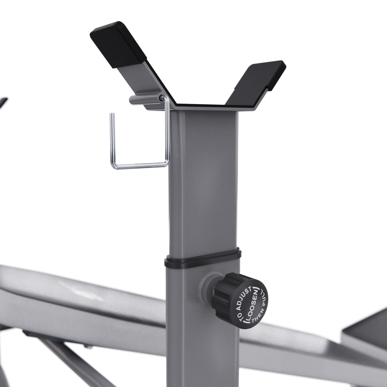 Расстояние между стойками составляет 76 см, что обеспечивает удобство при выполнении упражнений. Общая нагрузка на тренажёр не должна превышать 180 кг, включая вес пользователя и все грузовые пластины. Это гарантирует безопасность ваших тренировок. Весовые пластины не входят в комплект.