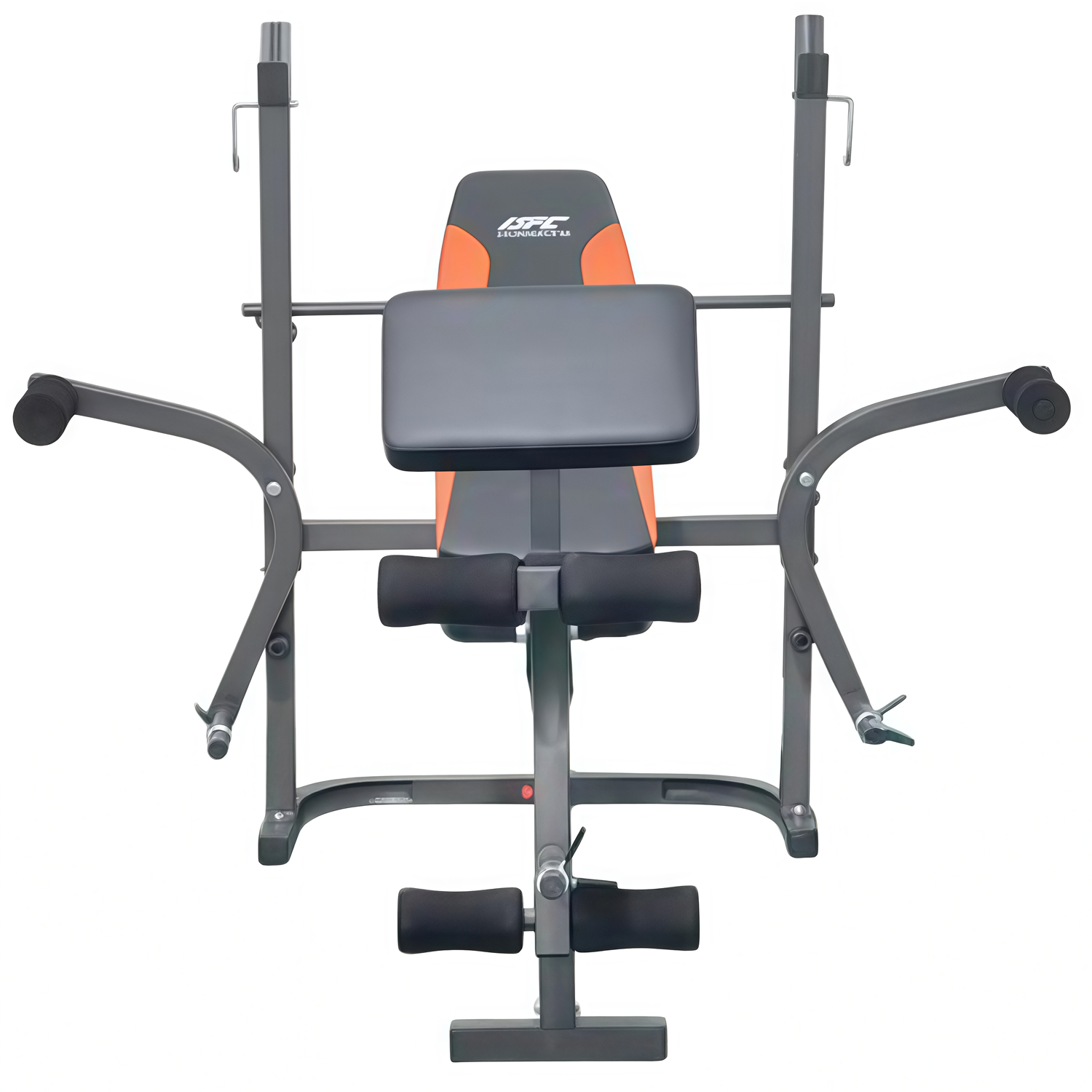 Скамья со стойками под штангу с опциями DFC D126 предназначена для домашнего использования и подходит для базовых силовых тренировок. Конструкция скамьи позволяет эффективно прорабатывать грудные мышцы, плечи, руки, мышцы ног, ягодицы, пресс, а также задействовать мышцы спины в качестве стабилизаторов.