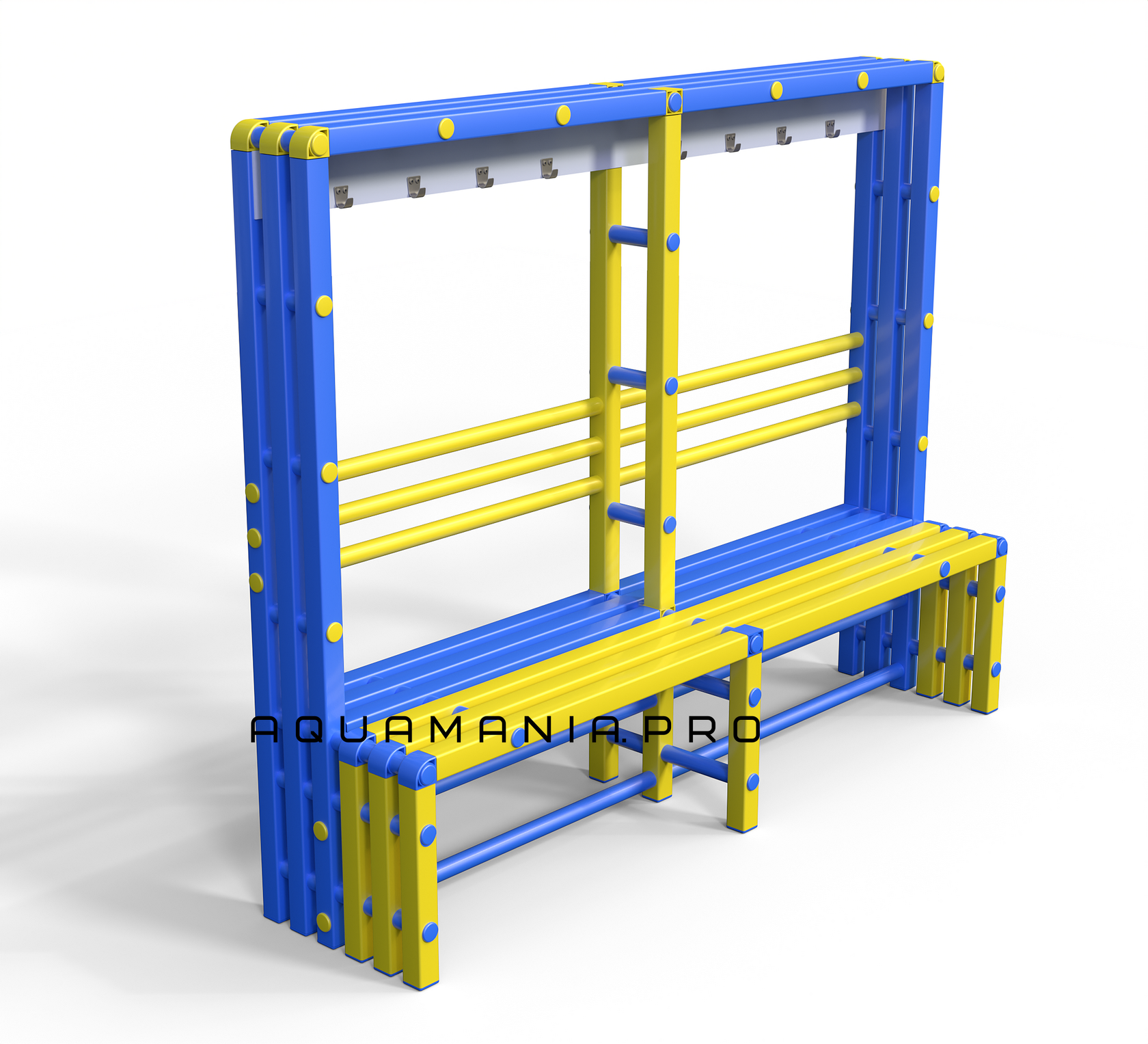 Надежная, устойчивая, безопасная скамейка-вешалка позволит комфортно разместить до 6 человек в раздевалке бассейна или любой душевой.