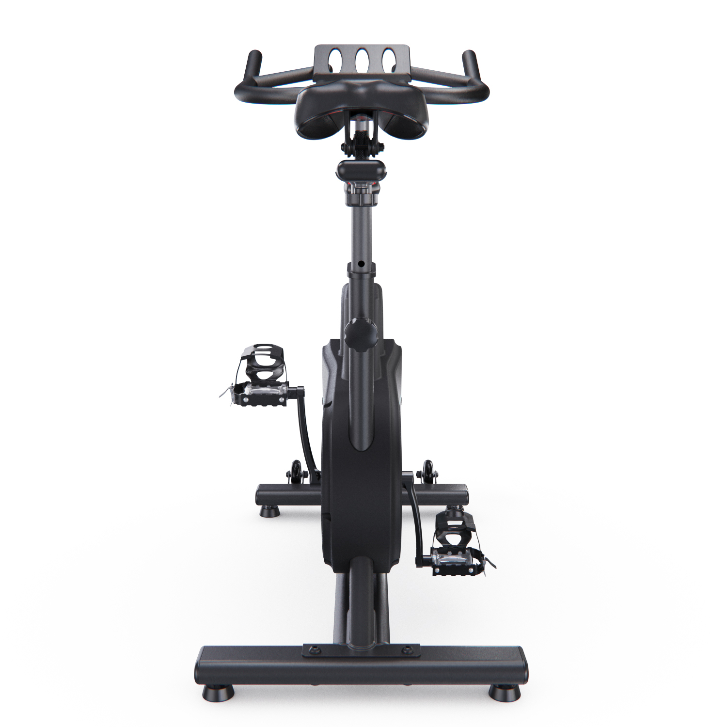 Маховик массой 15 килограмм обеспечивает плавный ход и регулировку интенсивности нагрузки. Возможность крутить педали в обе стороны добавляет разнообразия в тренировочный процесс. Ремень, обернутый вокруг маховика, обеспечивает уровень шума не более 52 дБ, делая спин-байк идеальным вариантом для домашнего использования.
