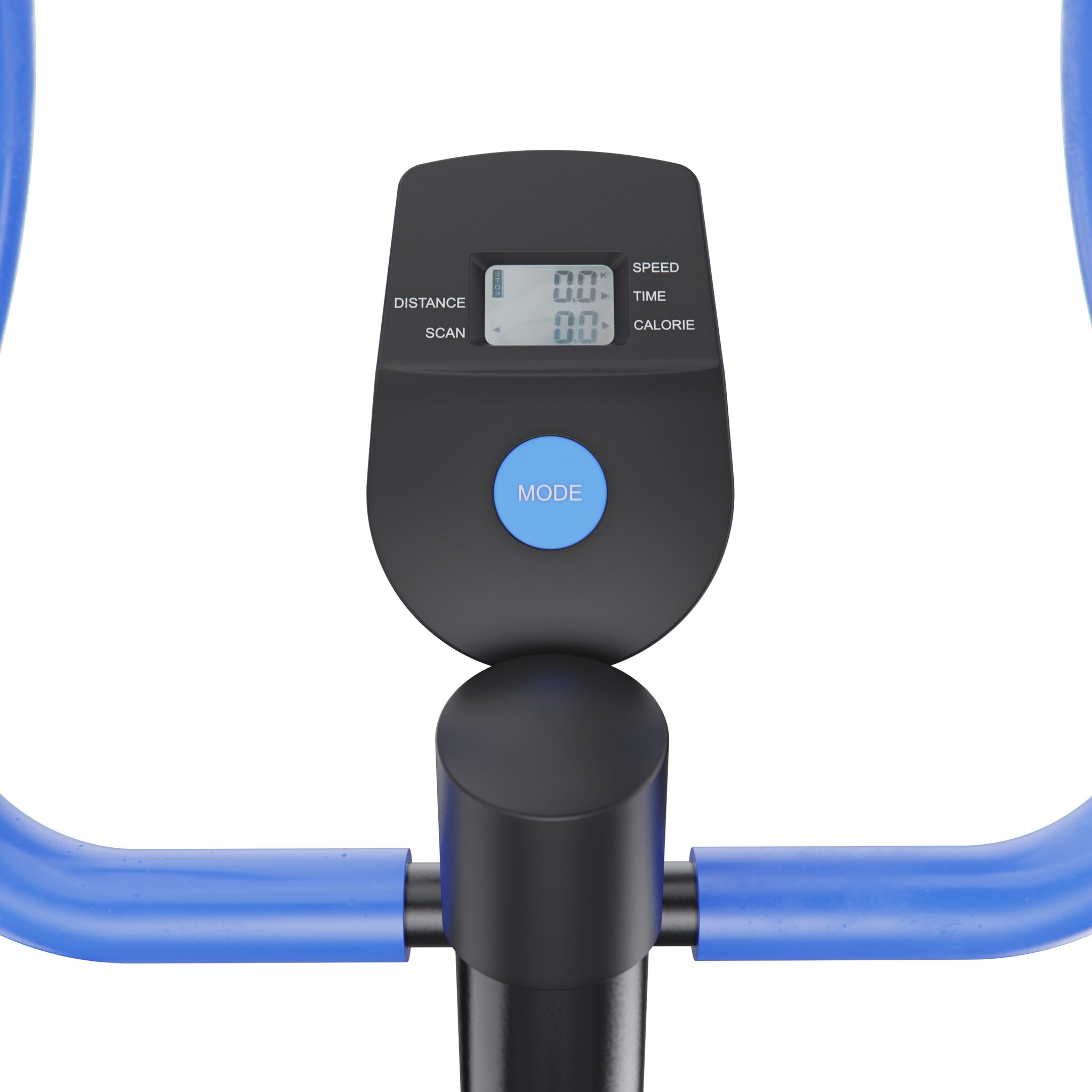 Велотренажер имеет монохромный LCD-дисплеей, который отображает ключевые параметры тренировки: время, калории, дистанцию, скорость и сканирование. Это позволит отслеживать прогресс и корректировать нагрузку в реальном времени. Для работы консоли используются батарейки типа АА (1.5 В) — простое и удобное решение, не требующее подключения к сети. Батарейки в комплект не входят.