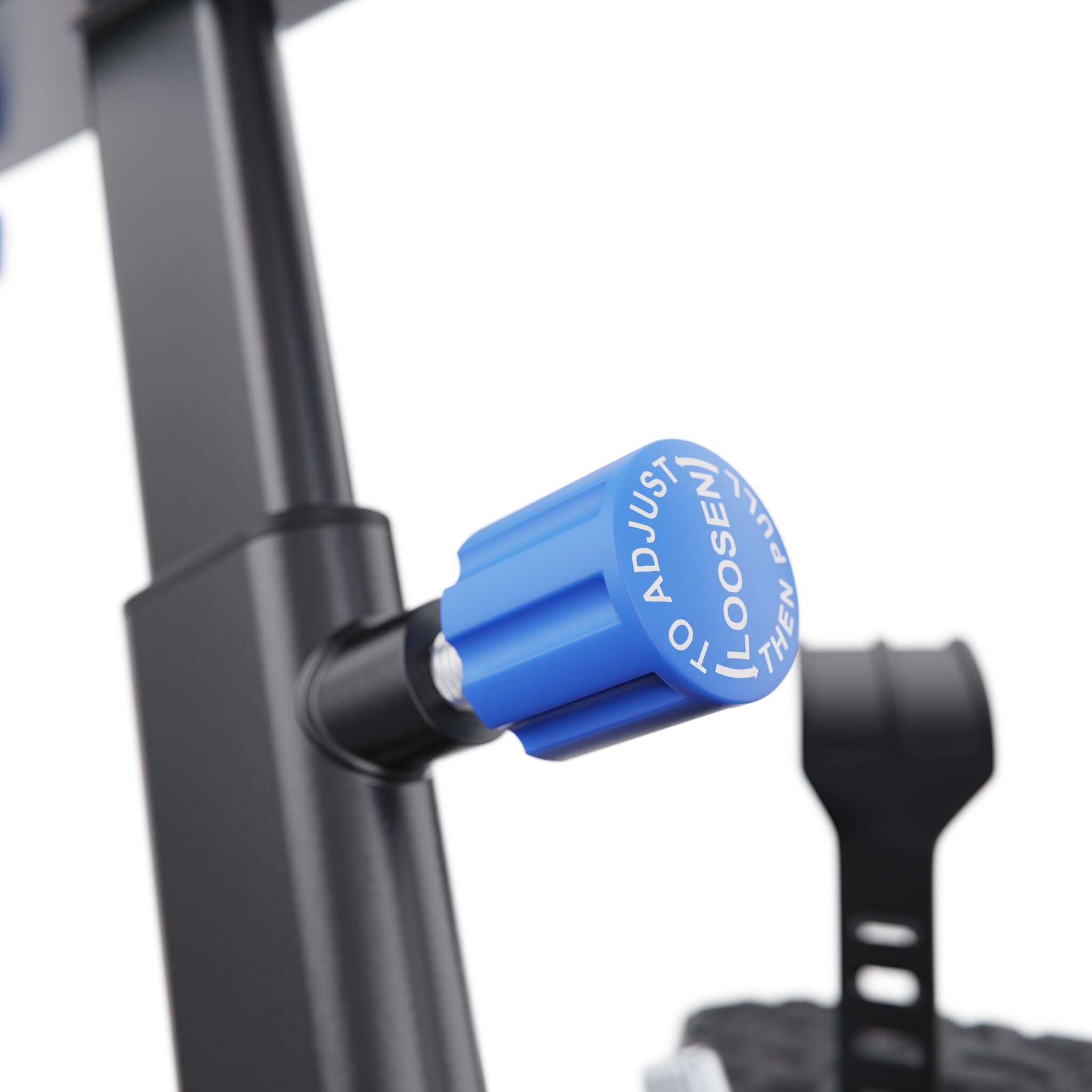 Сиденье велотренажера регулируется по высоте в диапазоне от 75 до 89 см — предусмотрено 6 фиксированных уровней, что позволяет подобрать оптимальное положение как для низких, так и для высоких пользователей. Помимо вертикальной регулировки, сиденье можно сдвигать вперёд или назад по горизонтали, что особенно важно для правильной посадки и снижения нагрузки на суставы.