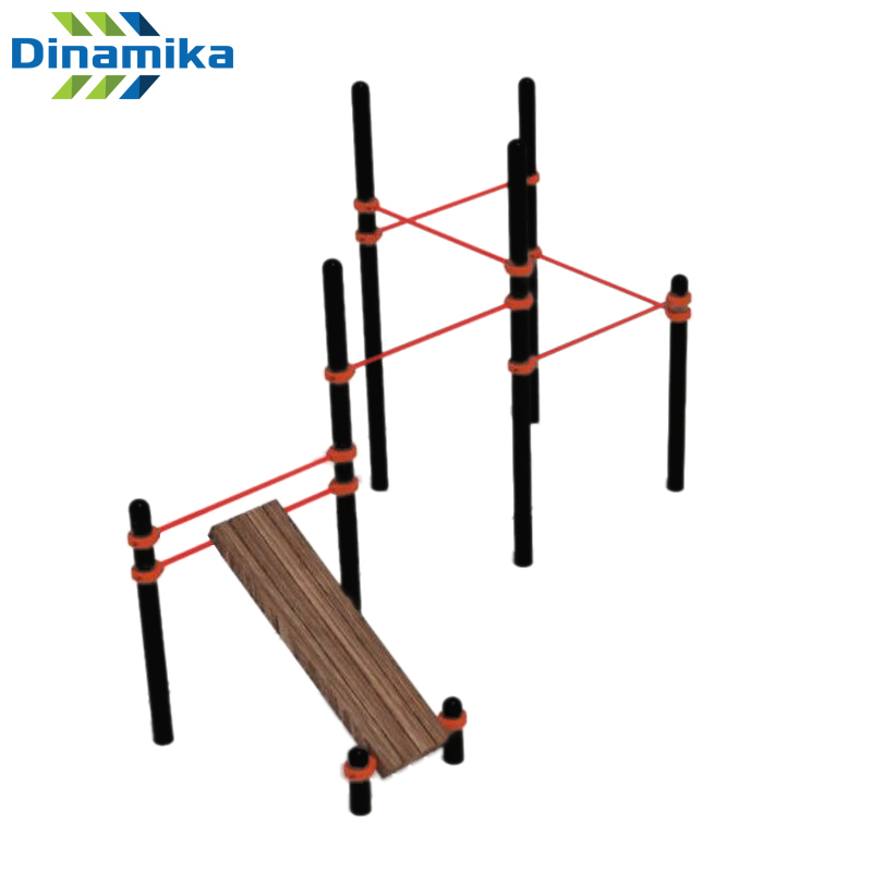 Спортивный комплекс №1 представляет собой конструкцию, состоящую из восьми вертикальных опорных столбов из круглопрофильной трубы, на которые устанавливаются - перекладины изготовленные из круглопрофильной трубы, и скамейки для пресса изготовленные из массива сосны. Фиксация всех навесных на стойки элементов происходит с помощью стальных хомутов. Сварные швы всех элементов изделия тщательно обработаны и зачищены. Поверхность всех элементов изделия окрашена порошковым напылением в электростатическом поле. Поверхность планок сидений скамеек покрыта трехкомпонентным лаком в два слоя. Планки скамеек устойчивы к истиранию, царапинам и влажности. Вертикальные столбы бетонируются в грунт. Во все внешние отверстия труб комплекса - установлены пластиковые заглушки. Комплекс поставляется разобранном виде.