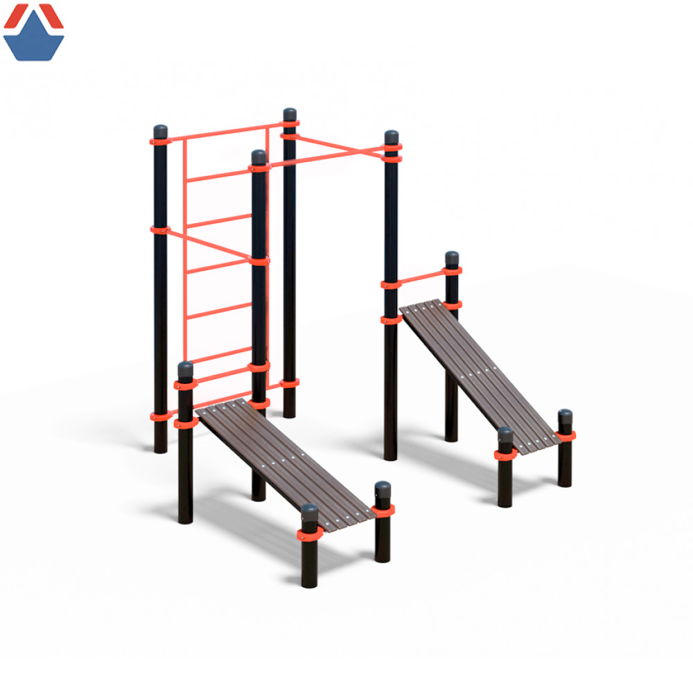 Данный спортивный комплекс дает возможность выполнять любые упражнения для пресса, а также традиционные для воркаута подтягивания, скручивания и подъемы, эффективно заниматься с собственным весом.