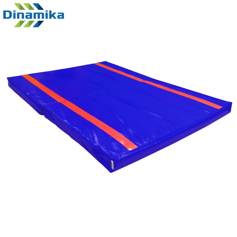 Мат спортивный представляет собой мягкое изделие, состоящее из чехла сшитого из тента ПВХ и наполнителя - прочного поролона (ППУ - пенополиуретан плотностью 19,3 кг/м3). Прочность позволяет обеспечить безопасность спортсменов при падении во время тренировок. У мата имеется молния со скрытыми замками для замены наполнителя. С двух сторон по бокам контрастная разметка шириной 5 см.