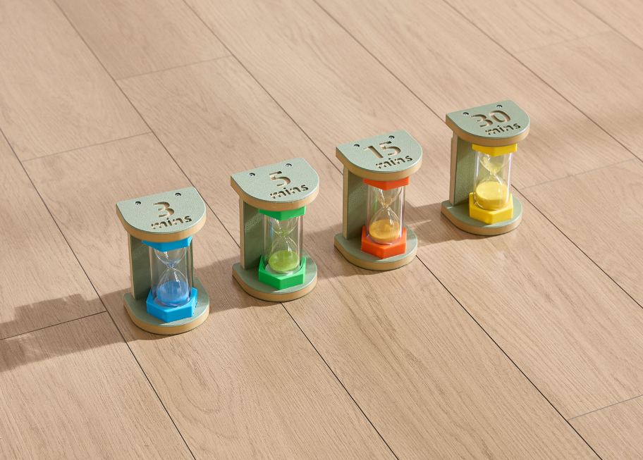 Цветные песочные часы наглядно показывают, как течёт время. В набор входят 4 таймера с интервалами: 3 минуты, 5 минут, 15 минут и 30 минут. Они идеально подходят, когда дети проводят научные эксперименты или учитель ставит задачу, которую нужно выполнить за определённое время.