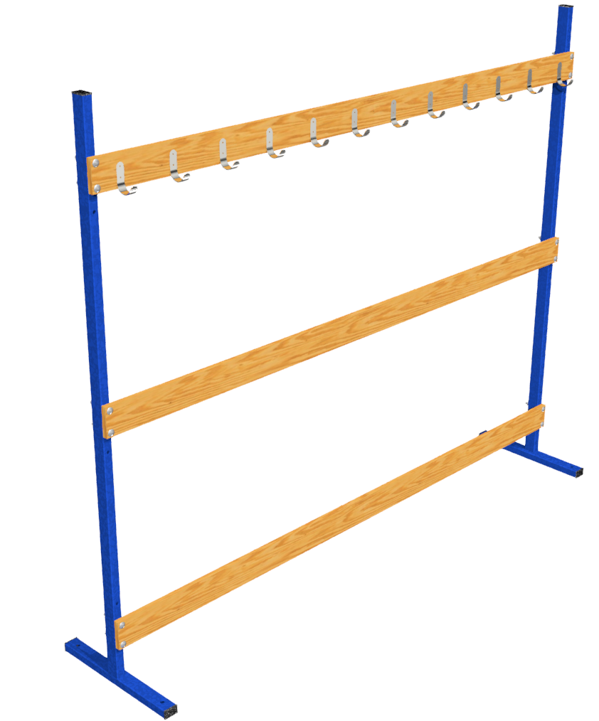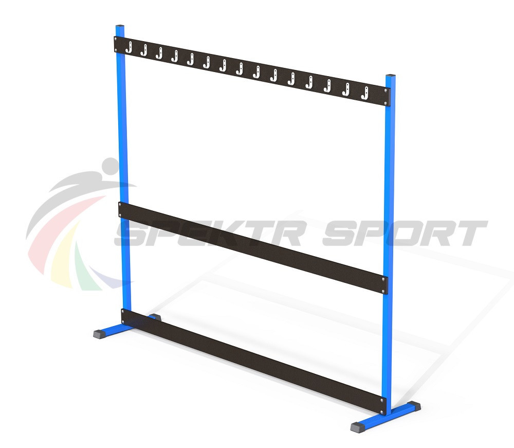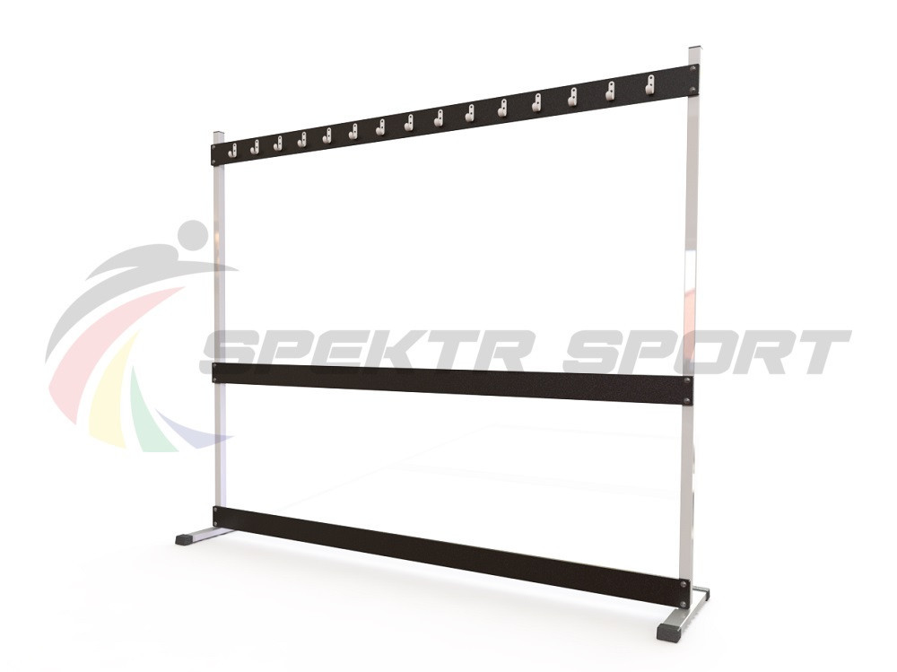 Лыжный стеллаж оснащен крючками для размещения лыжных палок