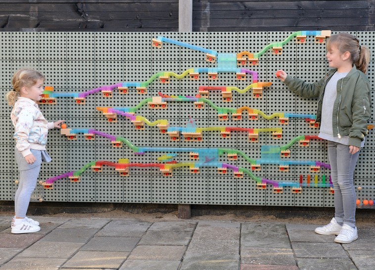 Набор состоит из 440 деталей. Направляющие разных форм (зигзагообразные, прямые, изогнутые, с перепадами высот или поворотами) крепятся на STEM стене кронштейнами и винтами, создавая интересные маршруты для прохождения шариков. Набор для монтажа идет в комплекте. При помощи переключателей и лестниц дети могут изменять направление и скорость движения шариков, вводя спуски и повороты. Можно заставить один катящийся шарик переворачиваться, вращаться, запускать эффект домино или приводить в движение другие шарики.