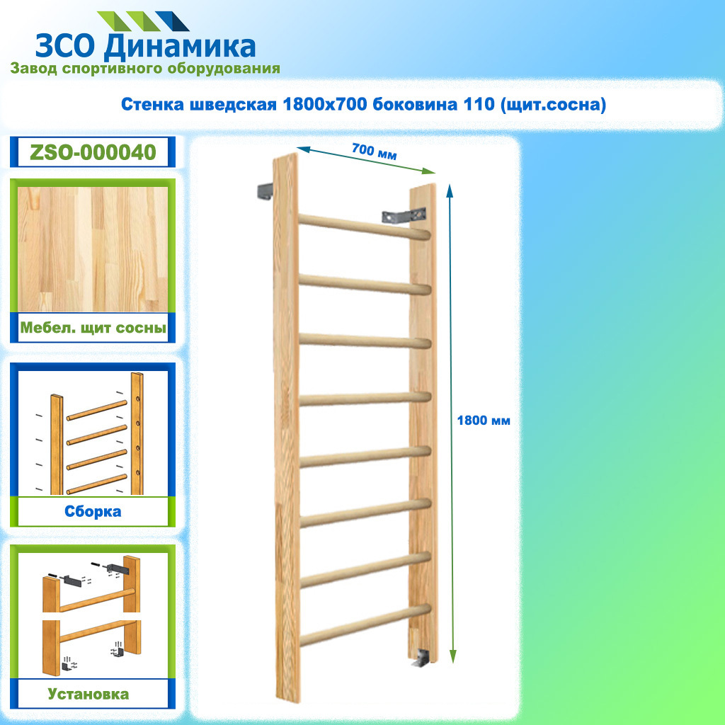 Стенка шведская / гимнастическая (щит.сосна) - представляет собой сборную конструкцию, состоящую из двух боковин изготовленных из дерева (клееный бессучковый мебельный щит сосны) и круглых перекладин из березовой фанеры. Наружные края стенок имеют закругленную форму, что уменьшает риск получения травм во время использования изделия во время тренировок. Поверхность шведской стенки тщательно отшлифована и покрыта двумя слоями высококачественного трехкомпонентного лака. Конструкция и метод крепления перекладин исключают возможность поворота во время эксплуатации. Для крепления к стене и полу используются уголки крепежные. Поставляется в разобранном виде.