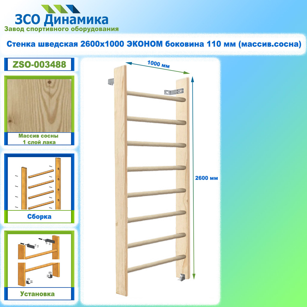 Стенка шведская / гимнастическая ЭКОНОМ (массив.сосна) - представляет собой сборную конструкцию, состоящую из двух боковин изготовленных из дерева (массива сосны) и круглых перекладин из березовой фанеры. Наружные края стенок имеют закругленную форму, что уменьшает риск получения травм во время использования изделия во время тренировок. Поверхность шведской стенки тщательно отшлифована и покрыта одним слоем высококачественного трехкомпонентного лака. Конструкция и метод крепления перекладин исключают возможность поворота во время эксплуатации. Для крепления к стене и полу используются уголки крепежные. Поставляется в разобранном виде.