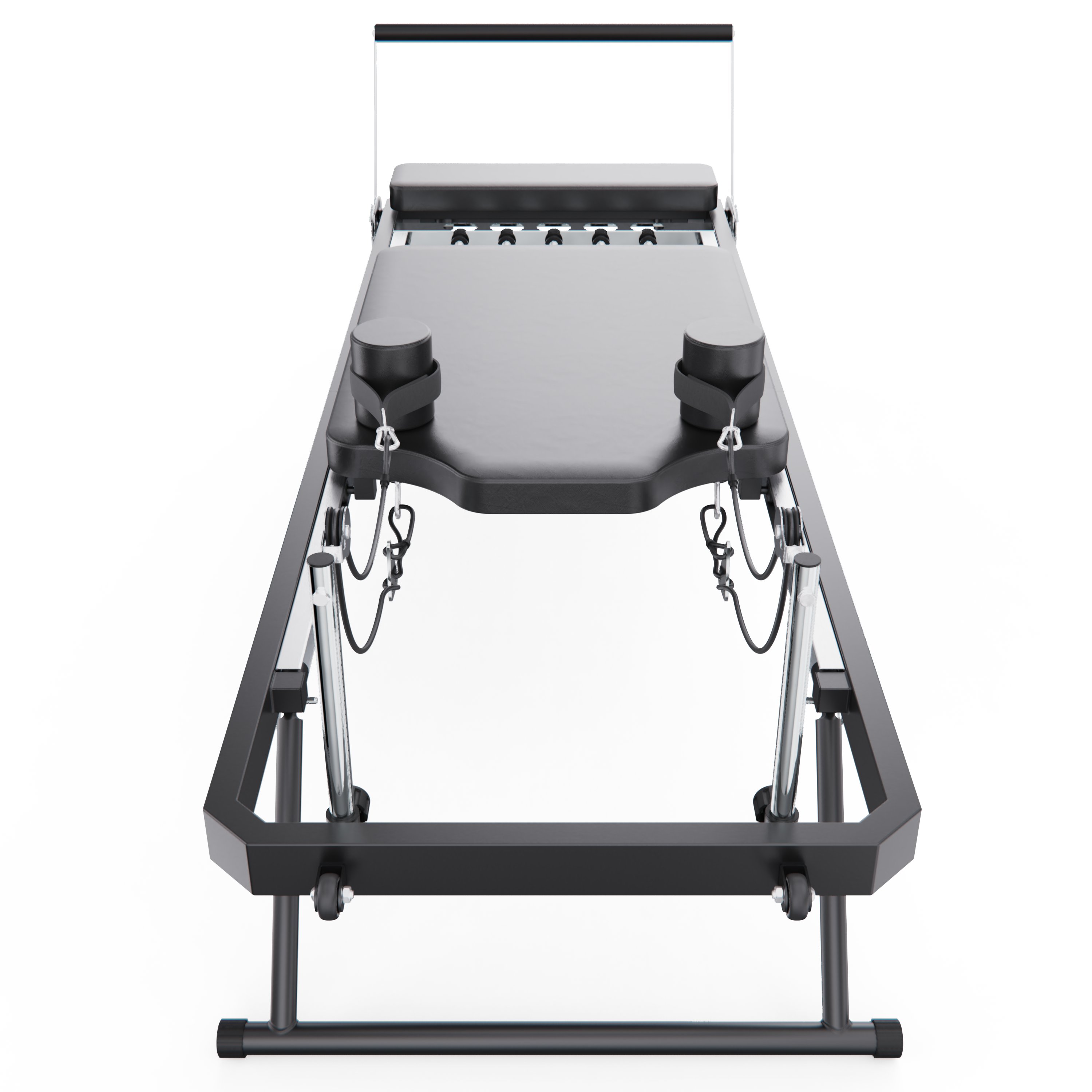 Складная модель делает стол для пилатеса удобным решением для дома и квартиры, позволяя адаптировать пространство под тренировки. Встроенные транспортировочные ролики обеспечивают лёгкое перемещение тренажёра по полу, упрощая смену места занятий и повседневное использование.