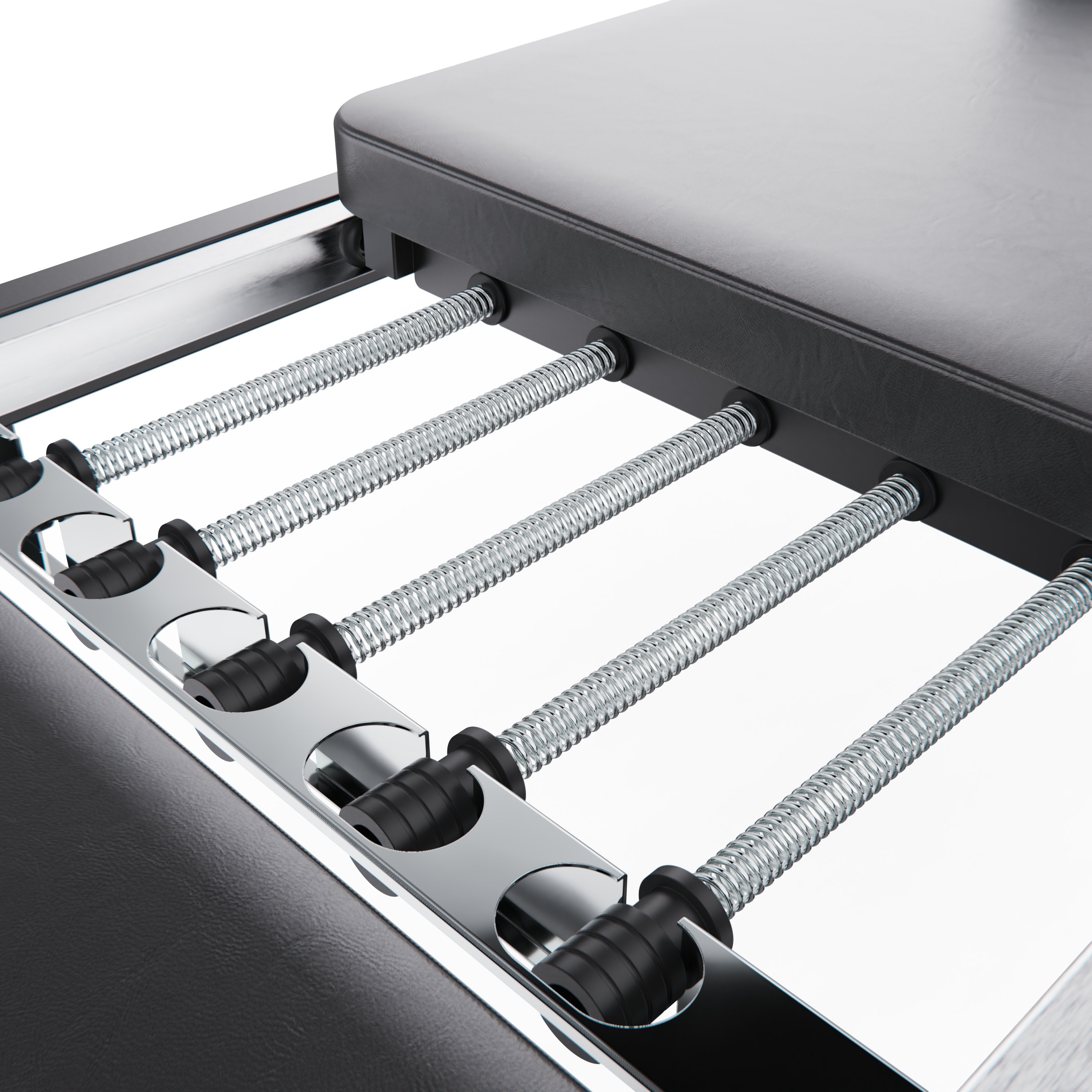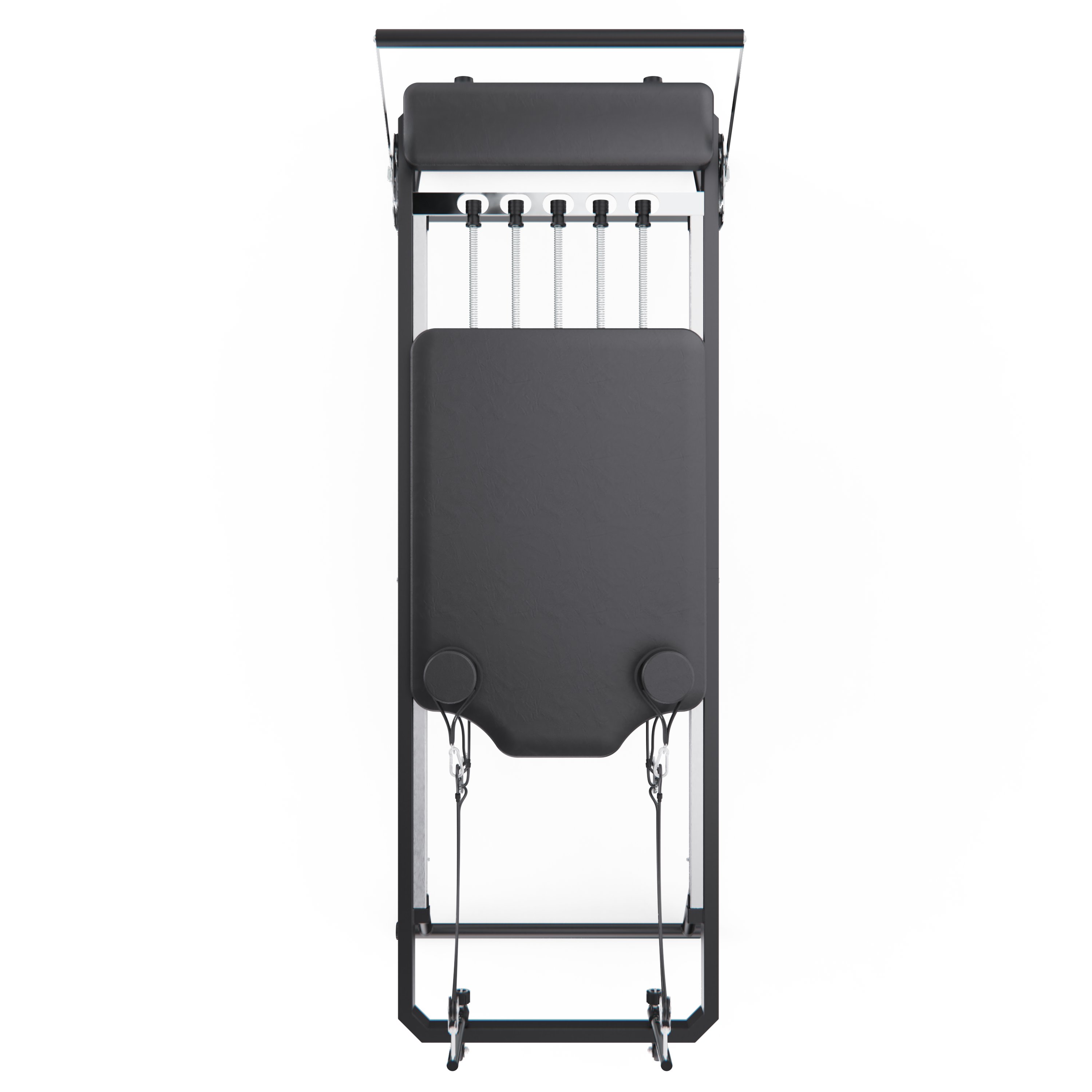 Тренажёр выполнен на прочной и устойчивой стальной раме, обеспечивающей надёжность и стабильность во время тренировок. Конструкция рассчитана на максимальный вес пользователя до 125 кг и подходит для людей с ростом от 150 до 190 см, что делает реформер универсальным решением для домашнего использования всей семьёй.