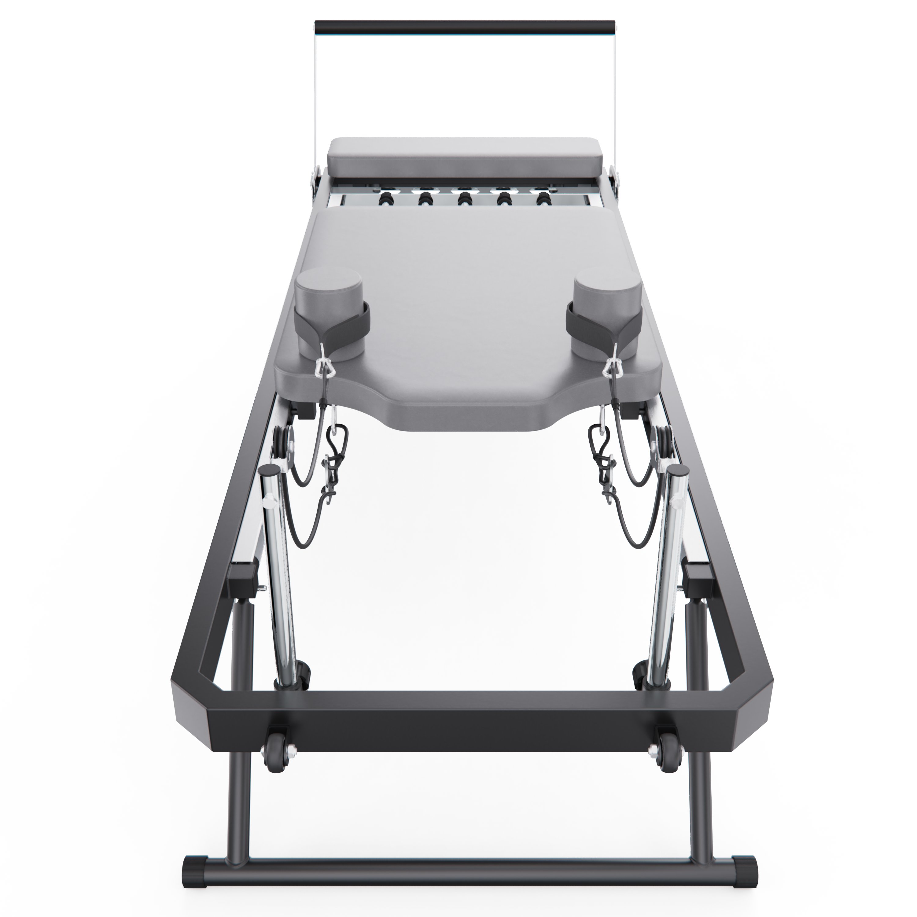 Складная модель делает стол для пилатеса удобным решением для дома и квартиры, позволяя адаптировать пространство под тренировки. Встроенные транспортировочные ролики обеспечивают лёгкое перемещение тренажёра по полу, упрощая смену места занятий и повседневное использование.