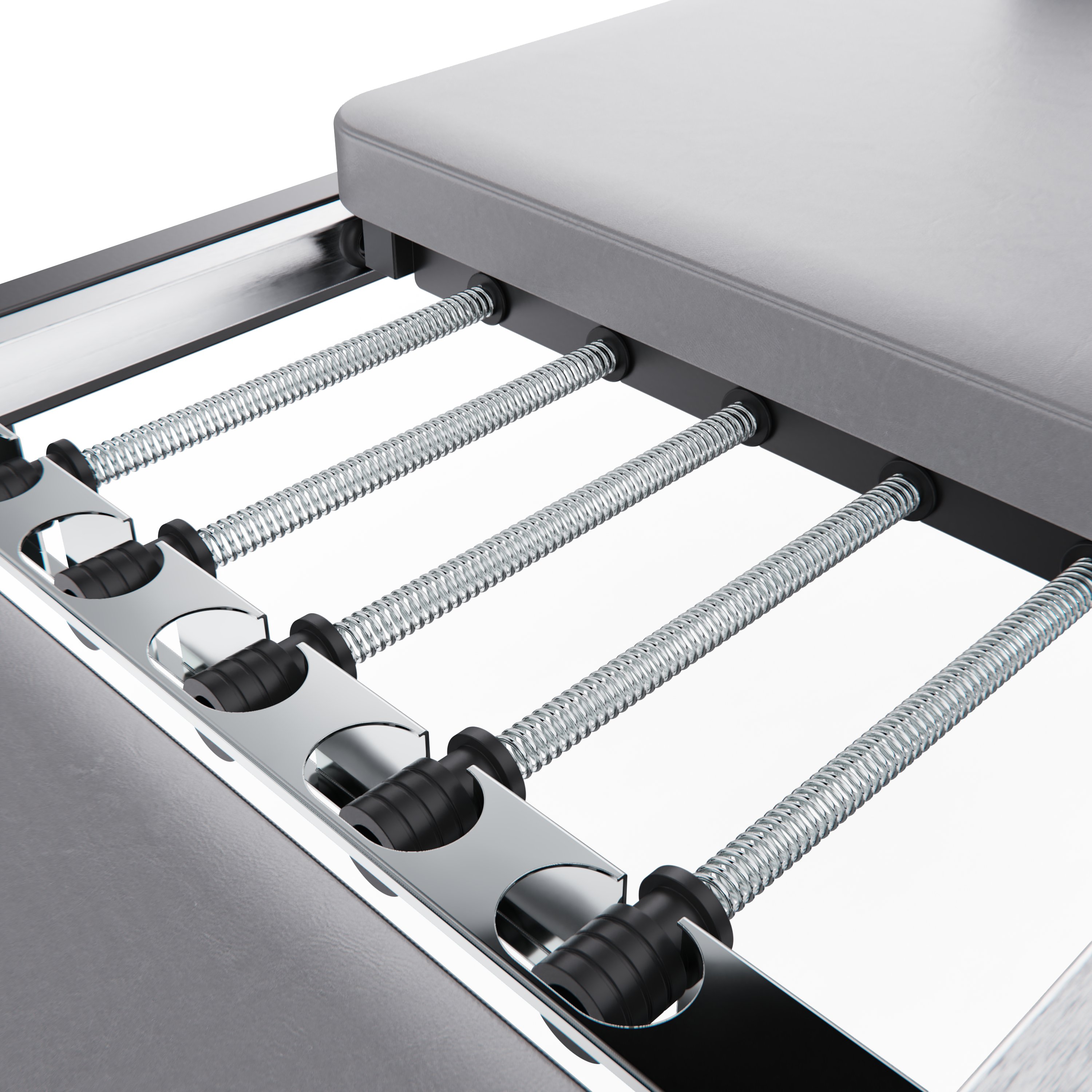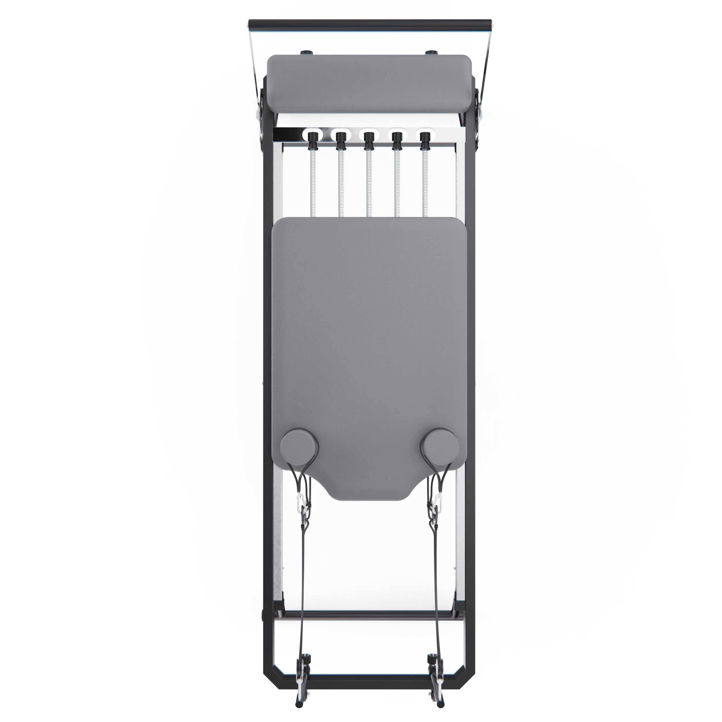 Тренажёр выполнен на прочной и устойчивой стальной раме, обеспечивающей надёжность и стабильность во время тренировок. Конструкция рассчитана на максимальный вес пользователя до 125 кг и подходит для людей с ростом от 150 до 190 см, что делает реформер универсальным решением для домашнего использования всей семьёй.
