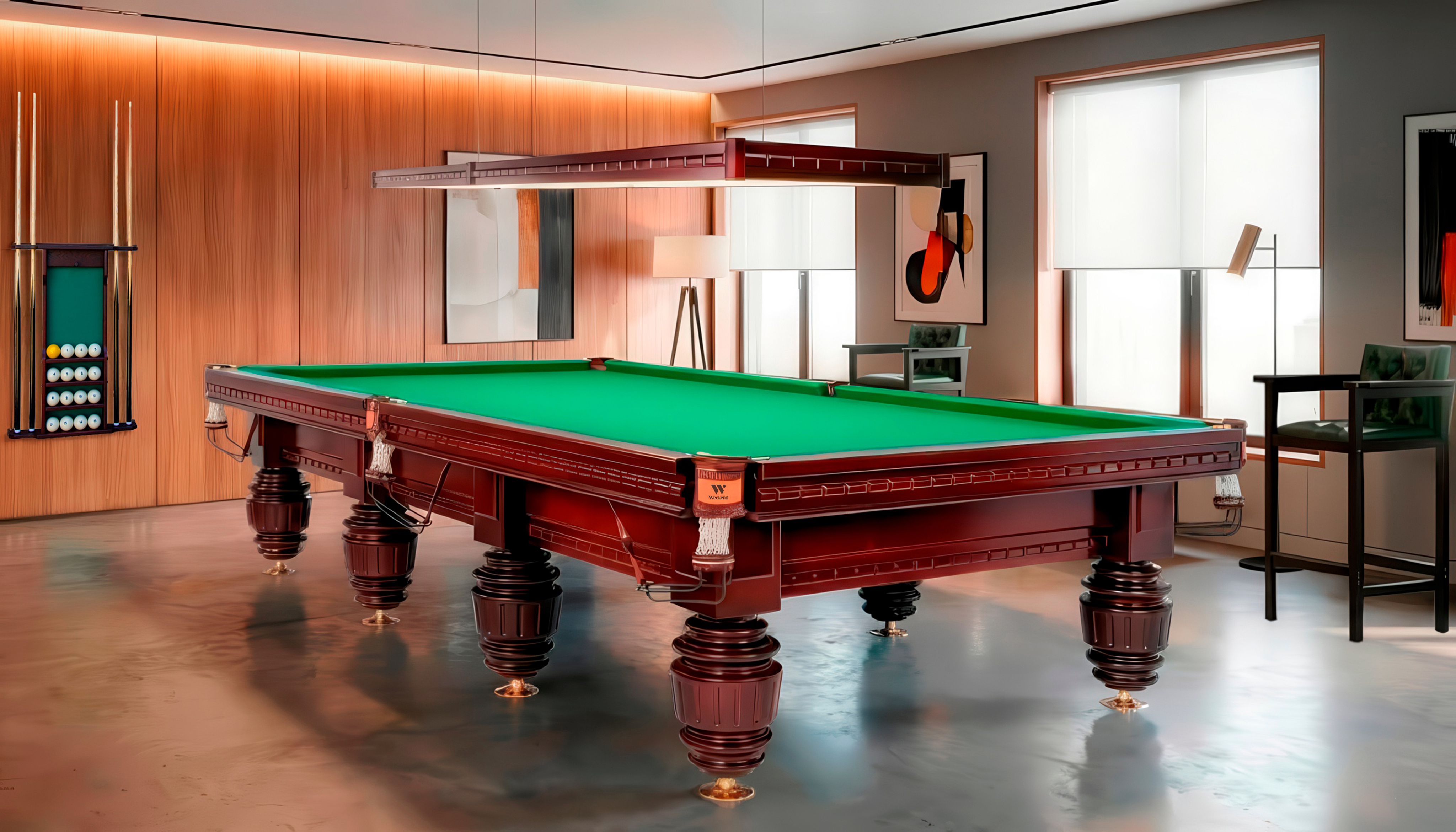 Бильярдный стол Turnus – это гармоничное сочетание изысканного классического дизайна и надежных современных технологий. Благородный оттенок махагона и массивные фигурные опоры придают столу особую элегантность и создают атмосферу настоящего аристократического клуба.
