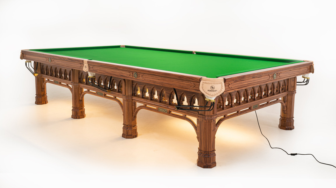 Профессиональный 12-ти футовый снукерный стол RASSON Gothic Dynasty создавался для игроков, которые ценят как эстетическую изысканность, так и идеальные условия для игры. Этот стол объединяет традиционные элементы дизайна с передовыми инженерными решениями, устанавливая новый стандарт в мире снукера.