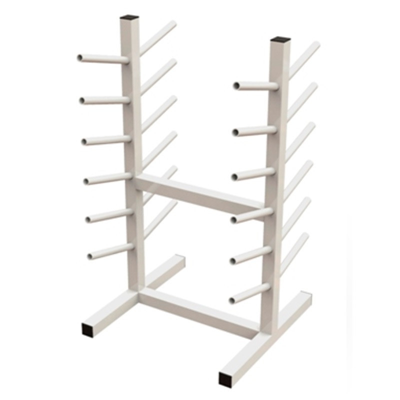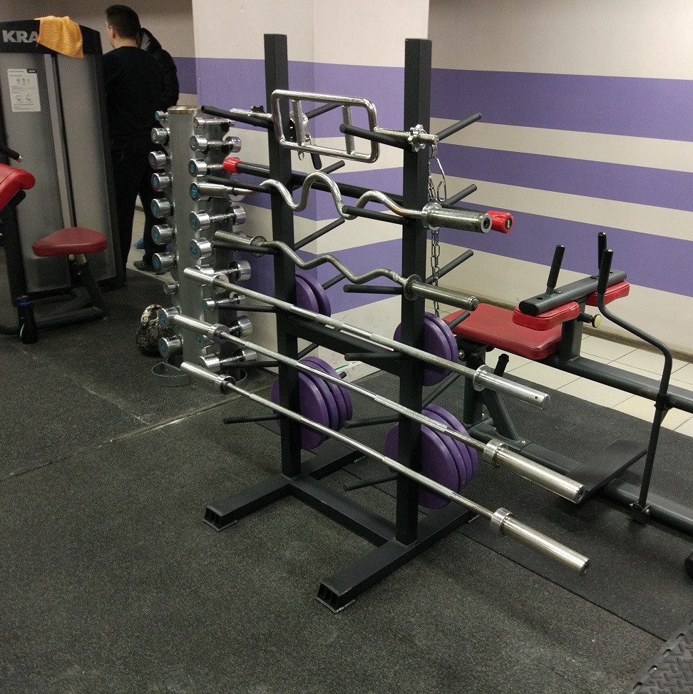 На ней можно разместить как бодибары, так и грифы для штанги или гимнастические палки