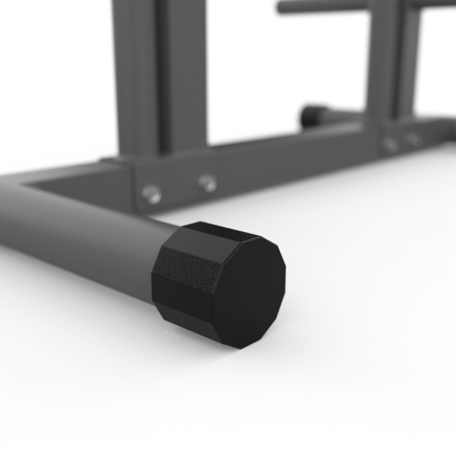Стойка выдерживает нагрузку до 100 кг, на ней можно хранить диски с посадочным отверстием 25 и 26 мм и грифы диаметром до 29 мм. Надежность стойки обеспечивает профиль рамы 40 х 40 х 1,2 мм, выполненный из высокопрочной стали.