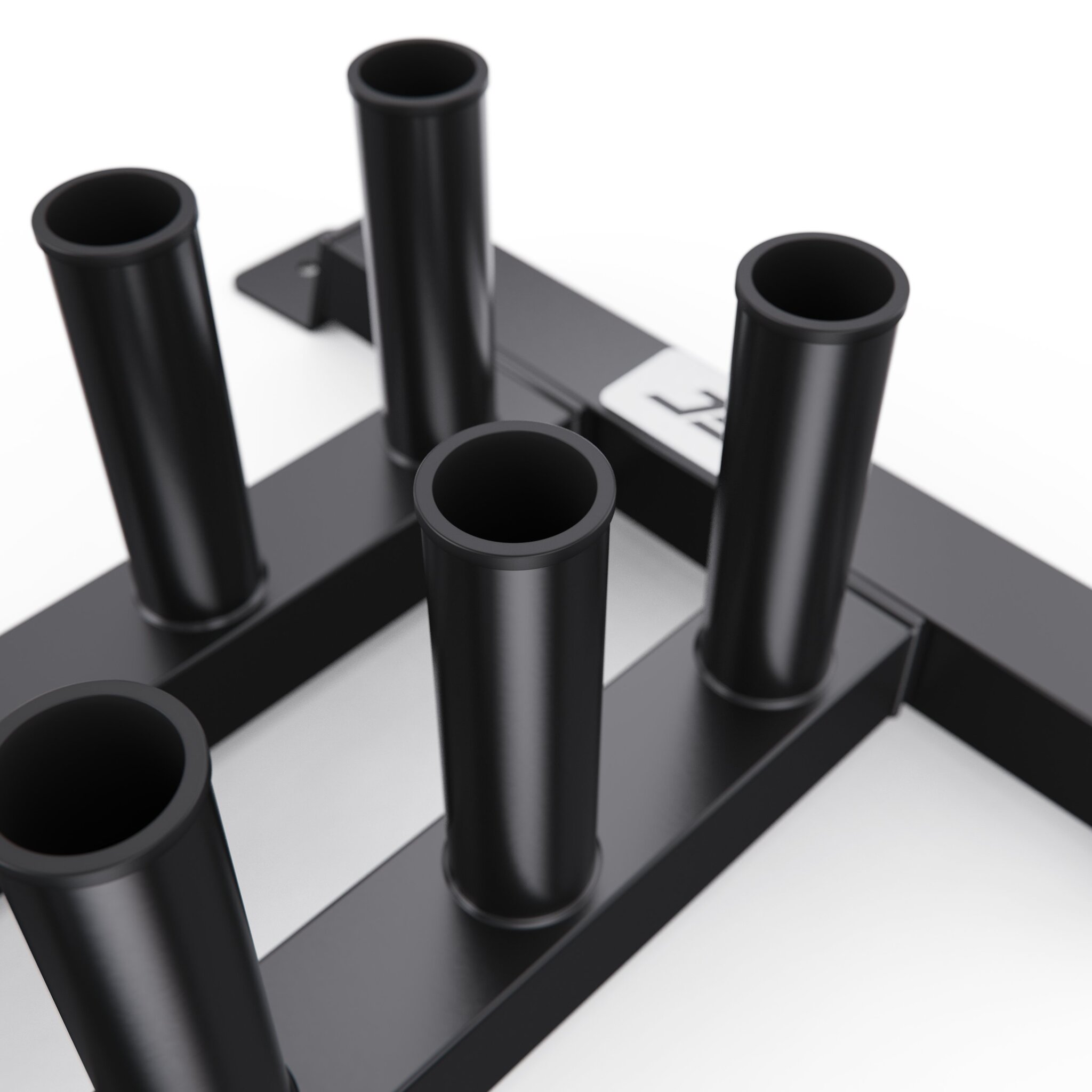 Диаметр посадочных труб составляет 50 мм, что соответствует стандарту олимпийских грифов. Стойка выдерживает максимальную нагрузку до 250 кг, обеспечивая безопасное хранение тяжелых спортивных снарядов.