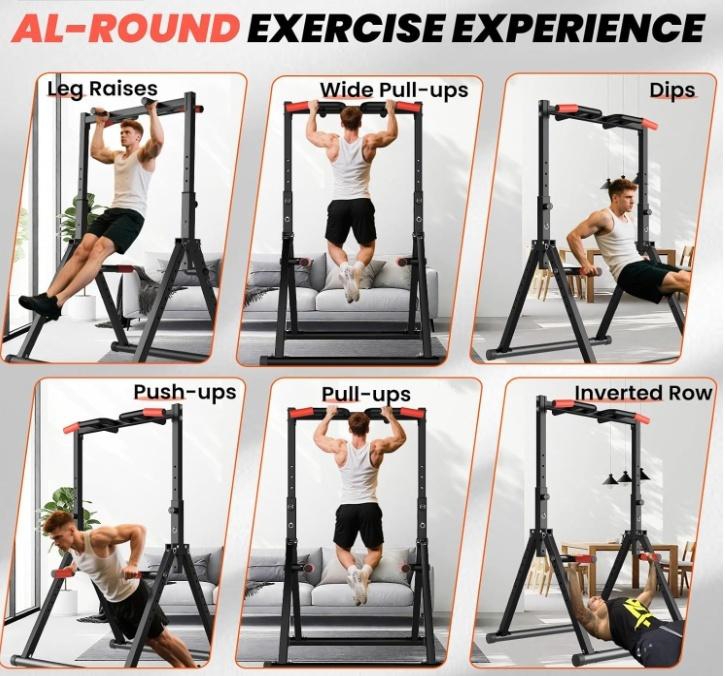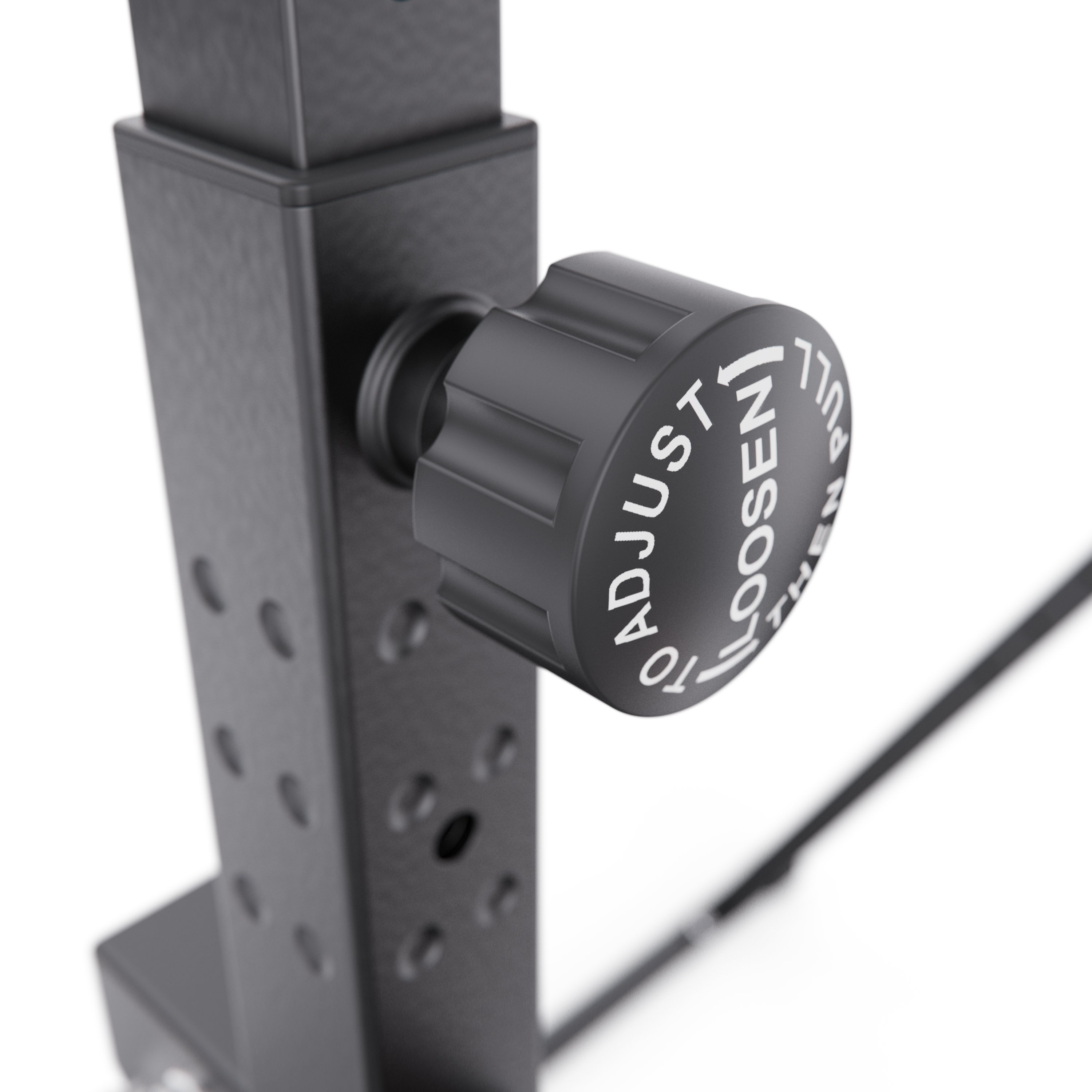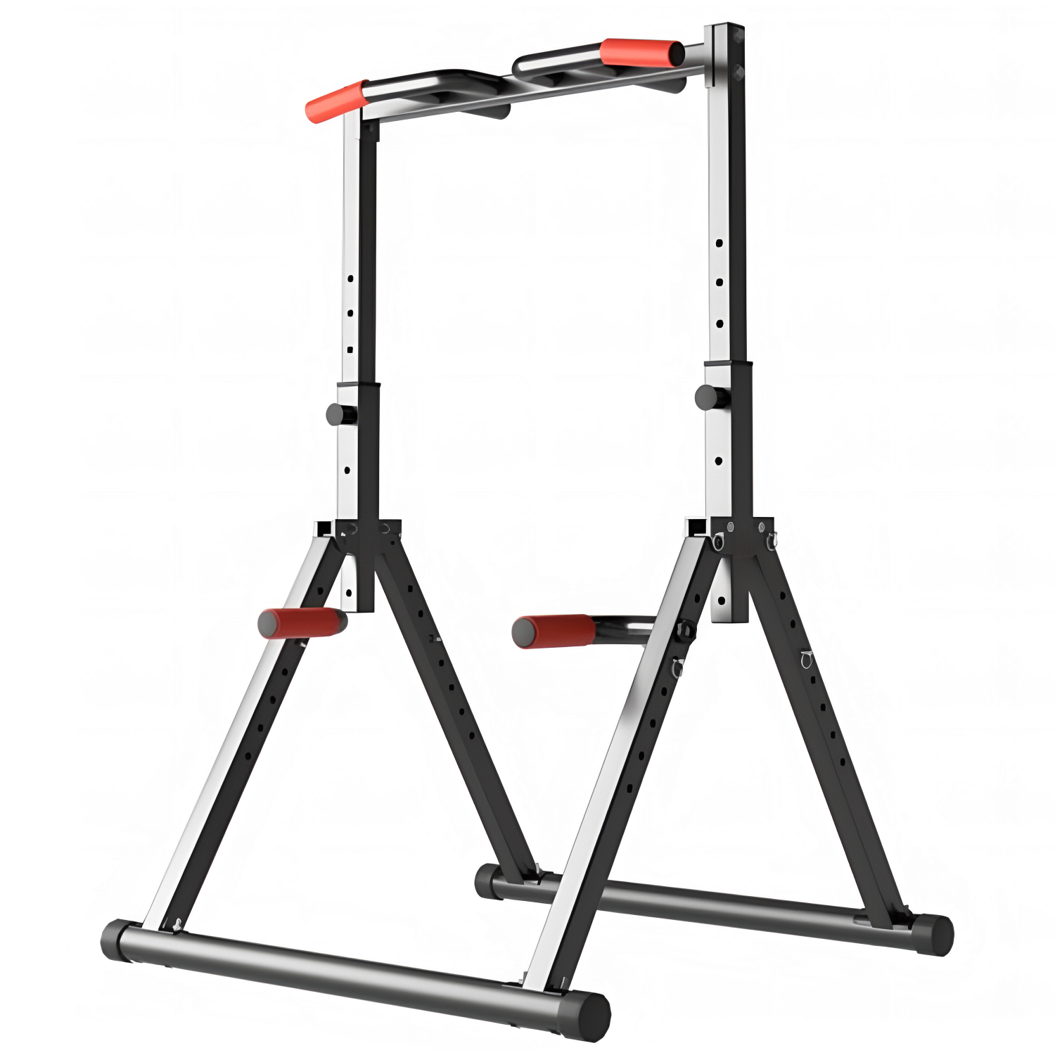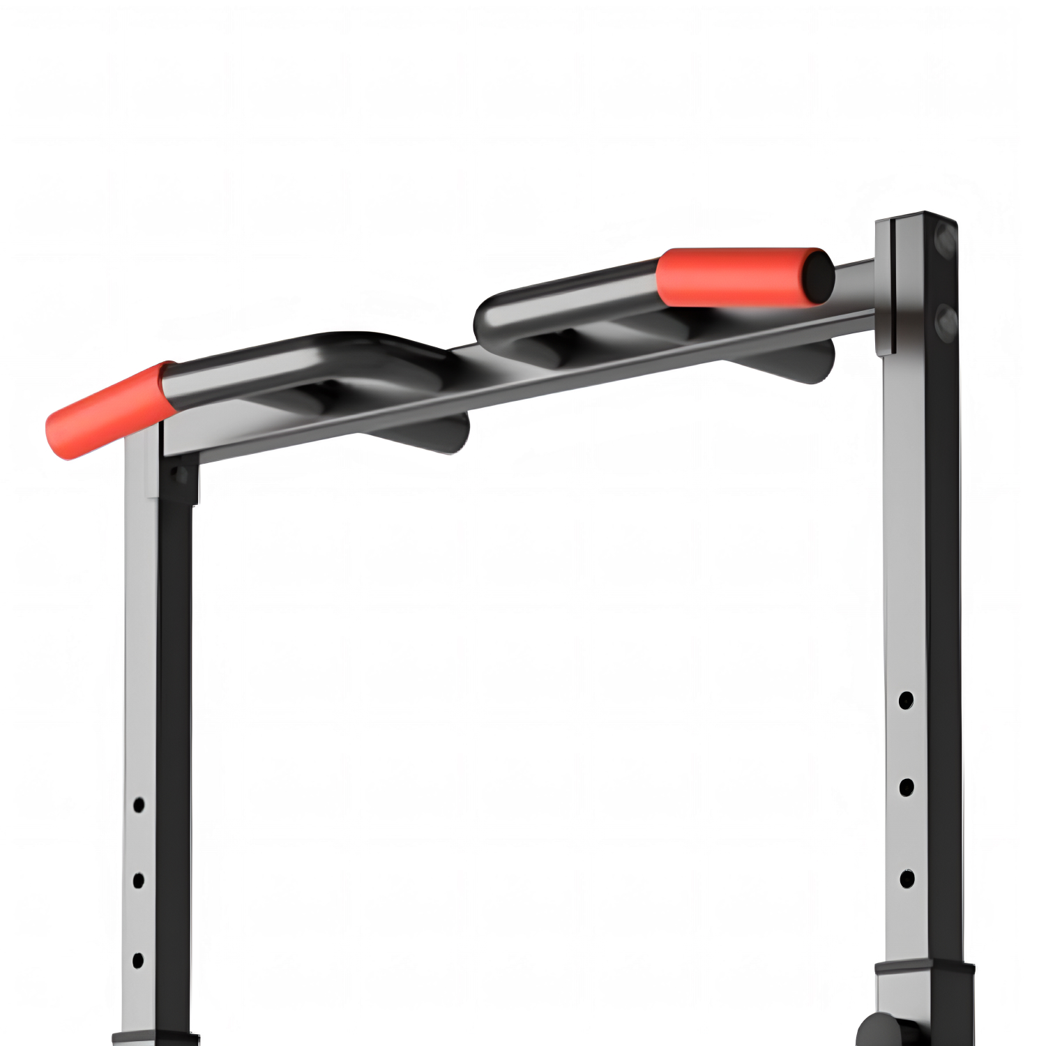 Конструкция дополнена многофункциональными рукоятками с правой и левой сторон, что позволяет варьировать хват и расширять возможности тренировок. Положение перекладины для отжиманий настраивается индивидуально, а удобный механизм регулировки обеспечивает быструю и простую смену высоты без лишних усилий.