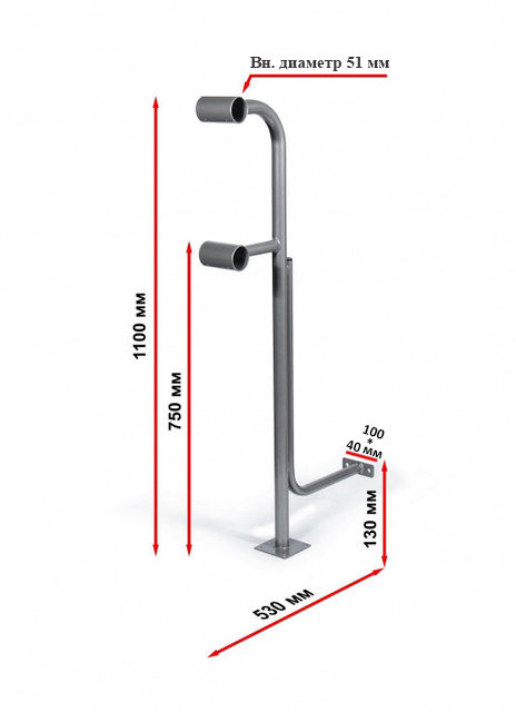 Расстояние от пола до верхней точки муфты для поручня - 110 см.