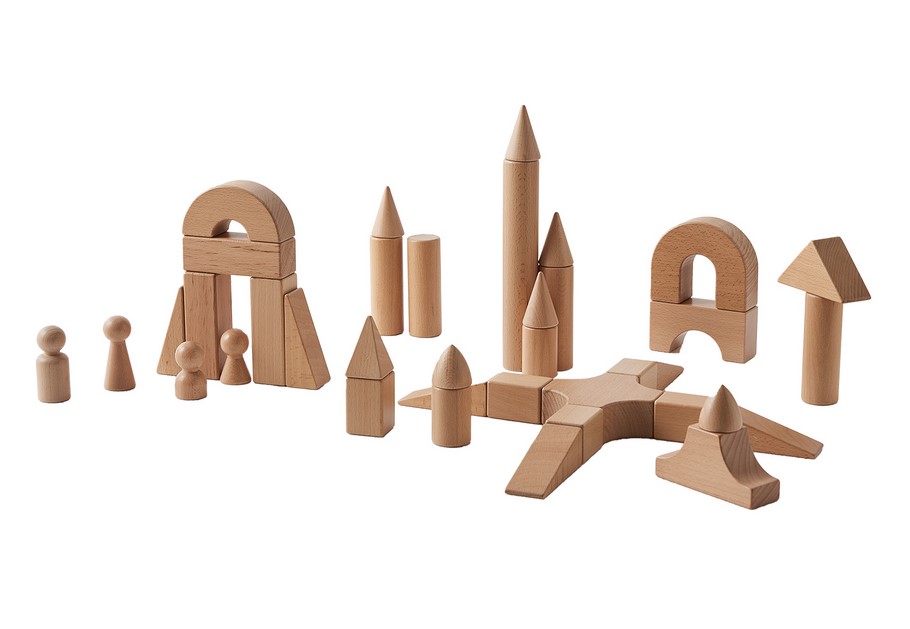 Игровой набор состоит из 124 деталей, выполненных из бука. Детали выполнены в виде башен, арок, блоков, колонн. Все детали качественно обработаны, имеют гладкую поверхность, без сколов и острых углов, приятны на ощупь.