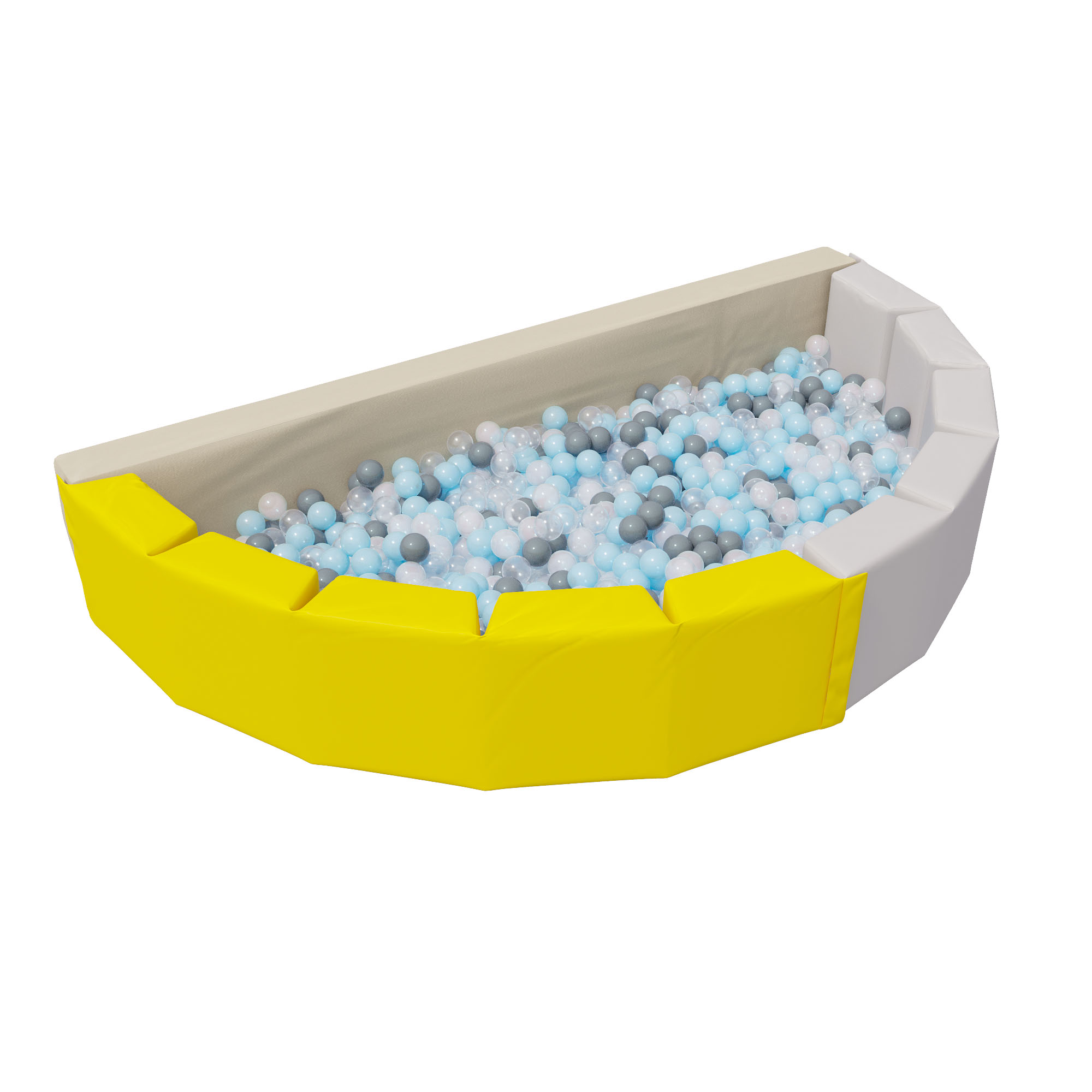 Сухой бассейн с шариками «Ломтик» - яркий бассейн оригинальной формы полукругом для детской комнаты или дачного участка. Отлично впишется в небольшие помещения, может быть использован в городской квартире. Благодаря оригинальному дизайну: яркие цвета - развлекают и надолго привлекают внимание ребенка, а необычная форма - развивает ловкость, координацию и детскую фантазию. Мягкие блоки соединяются на "липучке", что позволяет собирать и разбирать конструкцию.