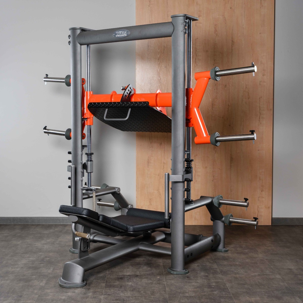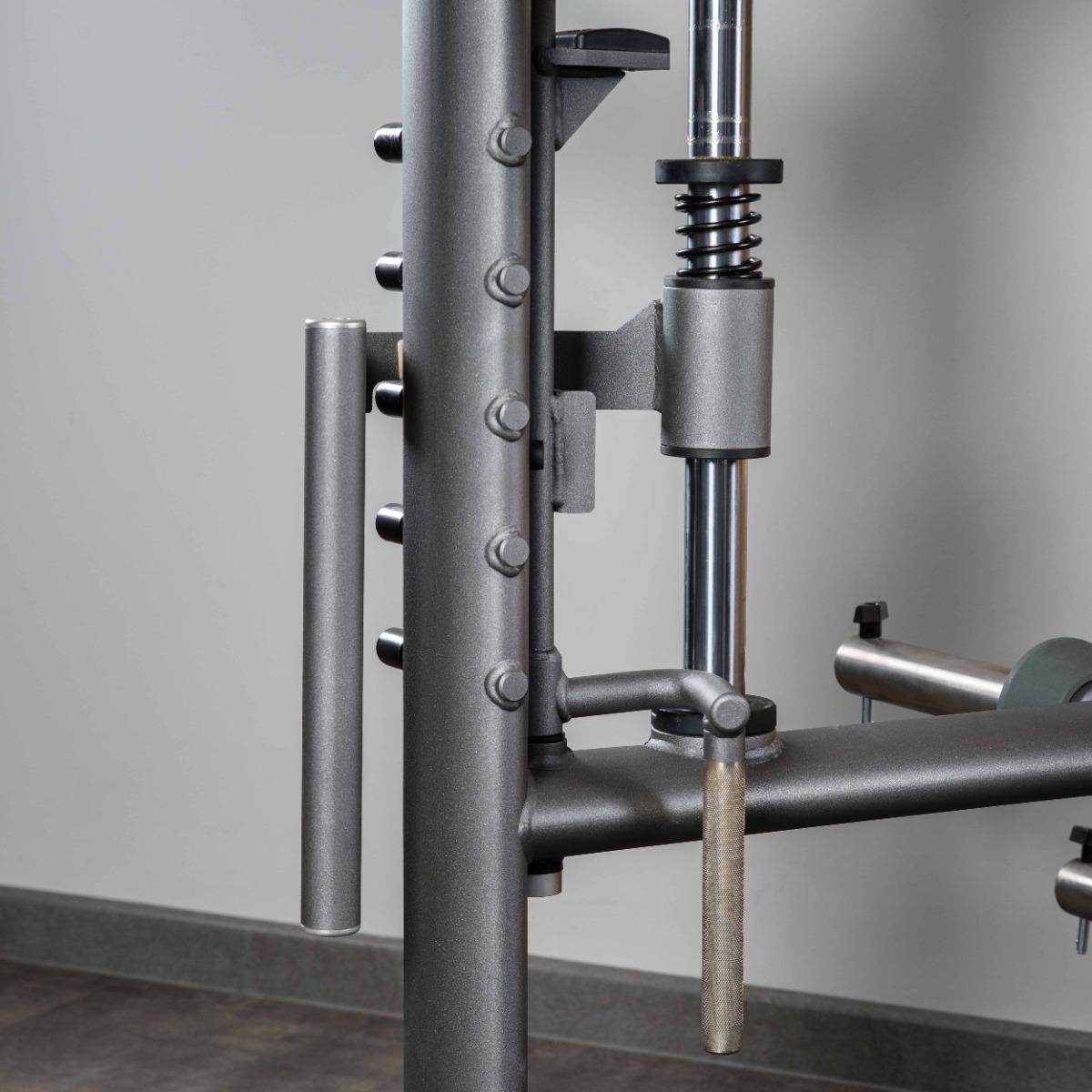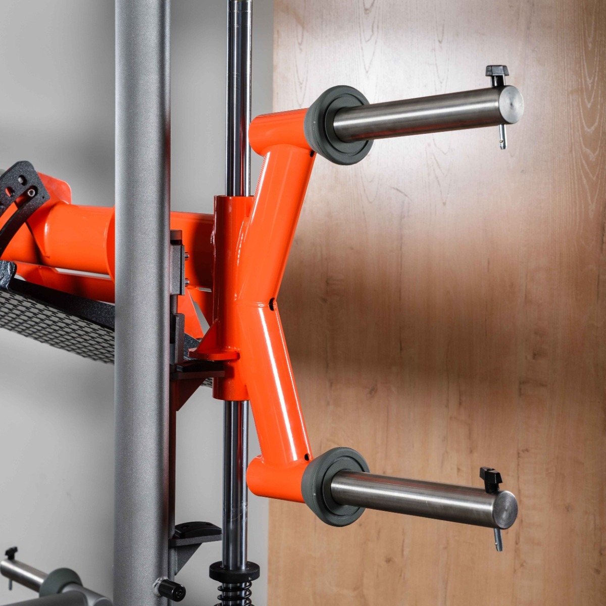 Рукояти упора (для снятия ограничителей перед началом выполнения упражнения) длиной 175 мм и диаметр 25 мм оснащены равномерной ромбовидной накаткой для надёжного хвата и торцевыми заглушками с болтовым креплением. Рукояти упора снабжены металлическими ограничителями для предотвращения прокручивания.