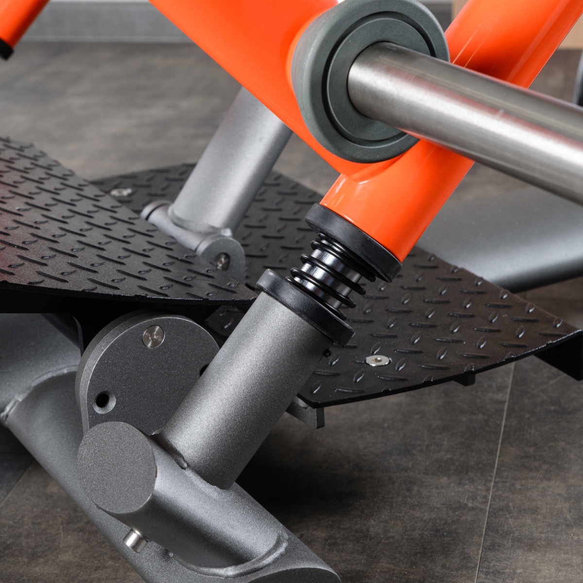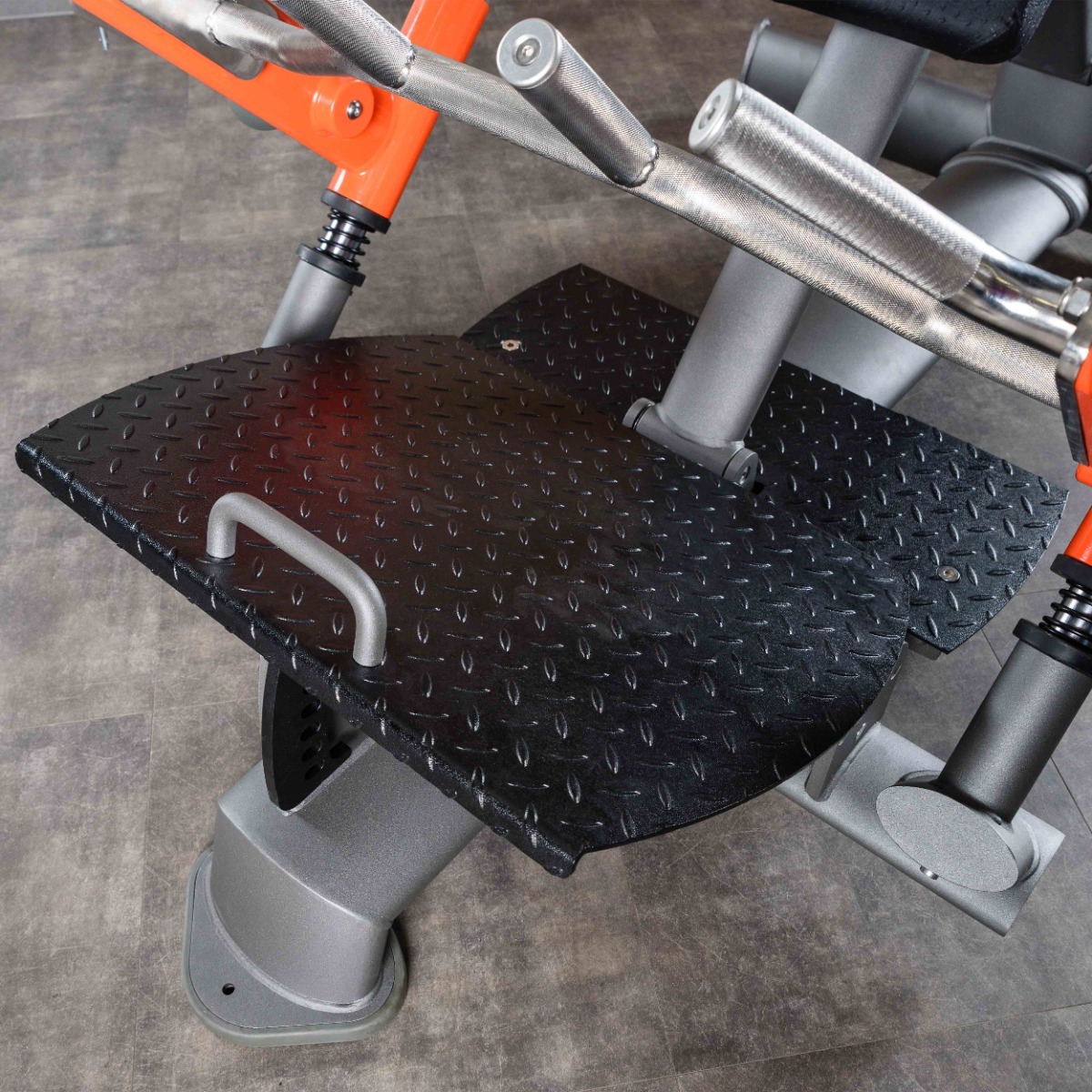 Платформы для ног выполнены из рифлёного стального листа толщиной 4 мм, исключающего соскальзывание во время выполнения упражнения.