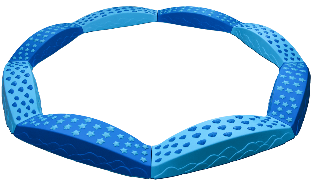 Тактильная дорожка - представляет собой волнообразную дорожку, состоящая из 8 деталей с текстурированной поверхностью (2-х видов), что предотвращает скольжение. Детали дорожки можно соединить между собой в замкнутый путь в форме кольца, либо в незамкнутые пути.